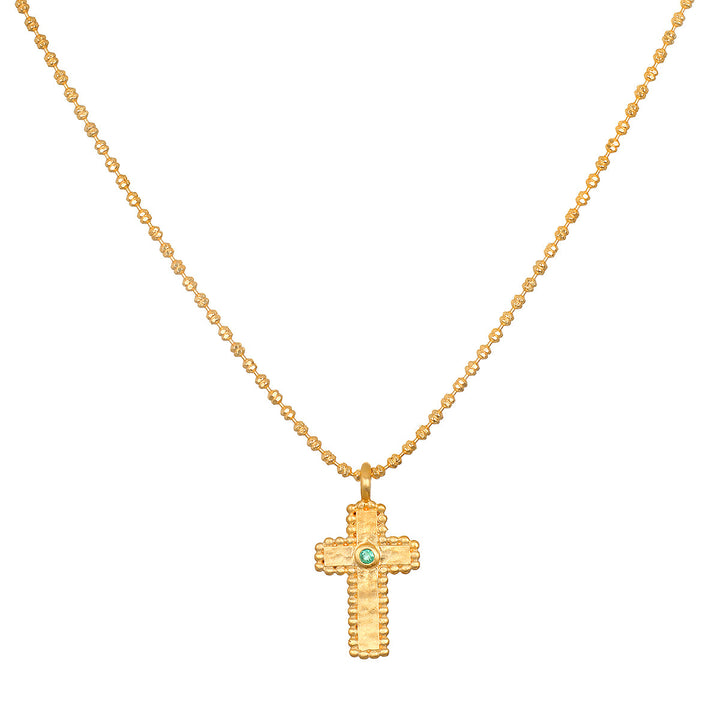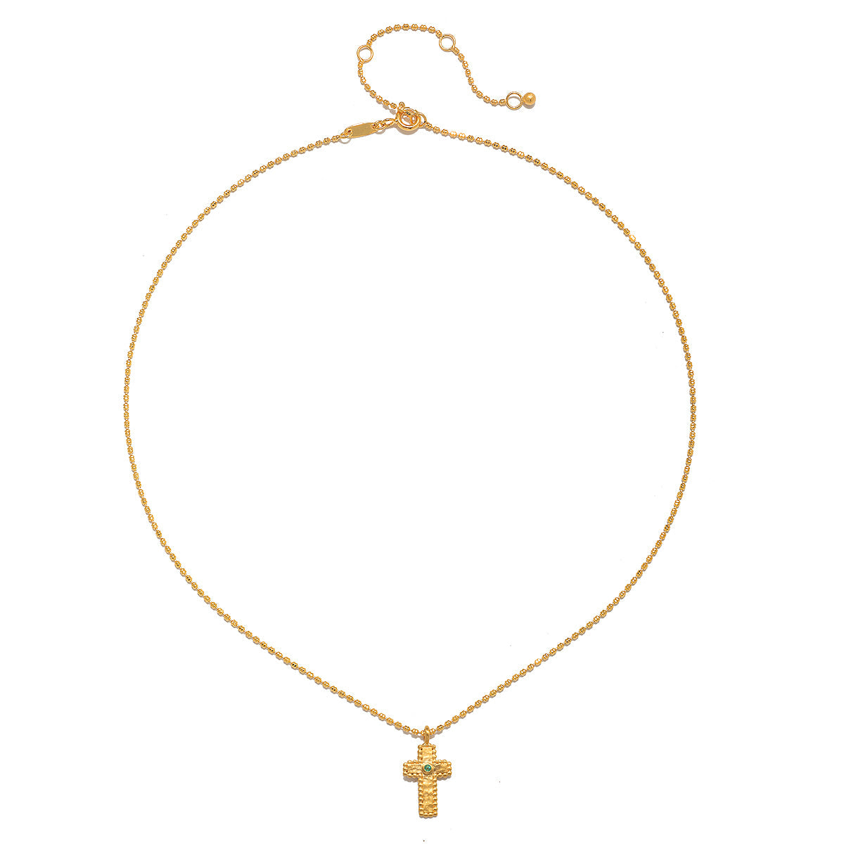 This cross gold necklace is a beautiful reminder of faith and devotion. The cross pendant shines with the wisdom and grace of an emerald, while the delicate beading adds a touch of elegance to the overall look. It’s a perfect piece for those who want to embrace their spirituality with style.