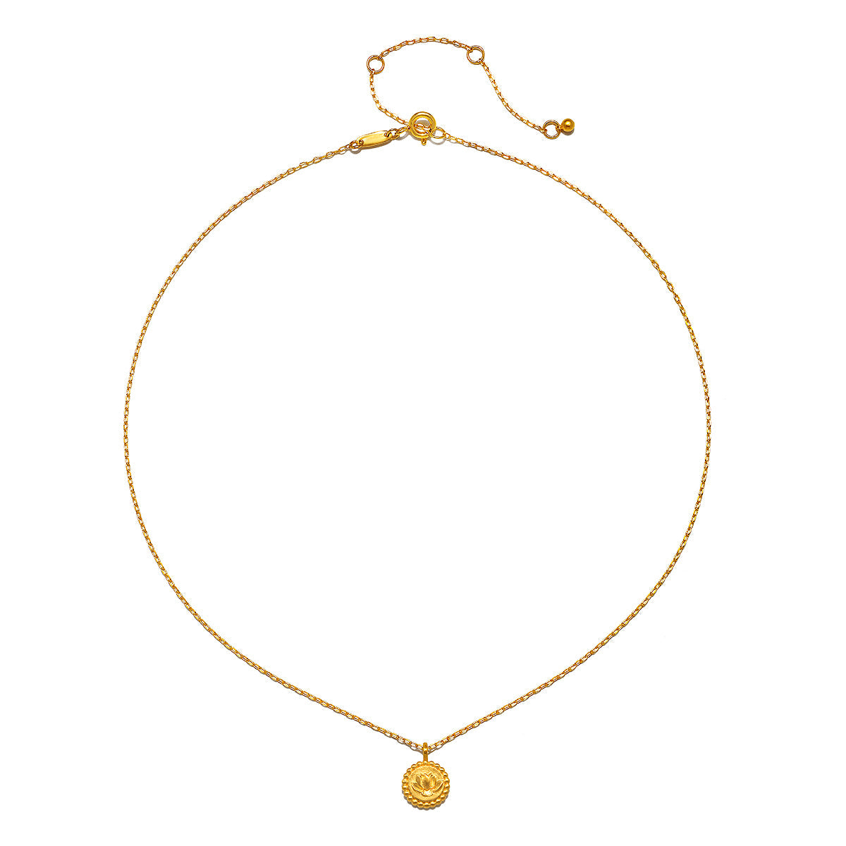The emerging potential lotus necklace is a meaningful piece that symbolizes new beginnings and infinite potential. The delicately engraved lotus flower, paired with intricate beading along the outer edge of the pendant, serves as a reminder of your own transformation and growth.
