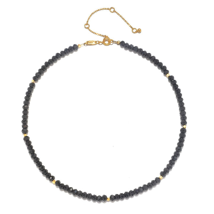 The empowered being black spinel choker necklace inspires strength and grounding. The black spinel beads symbolize energy and empowerment, while the golden accents add a touch of elegance, making this choker perfect for those who wish to embrace their inner strength.
