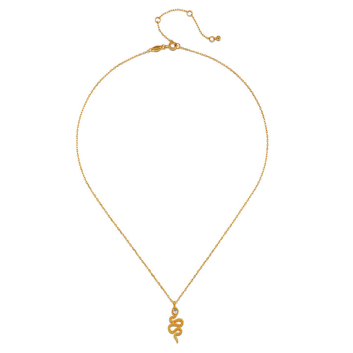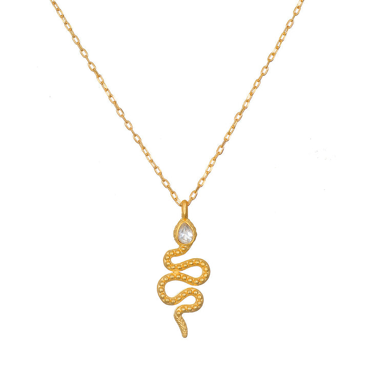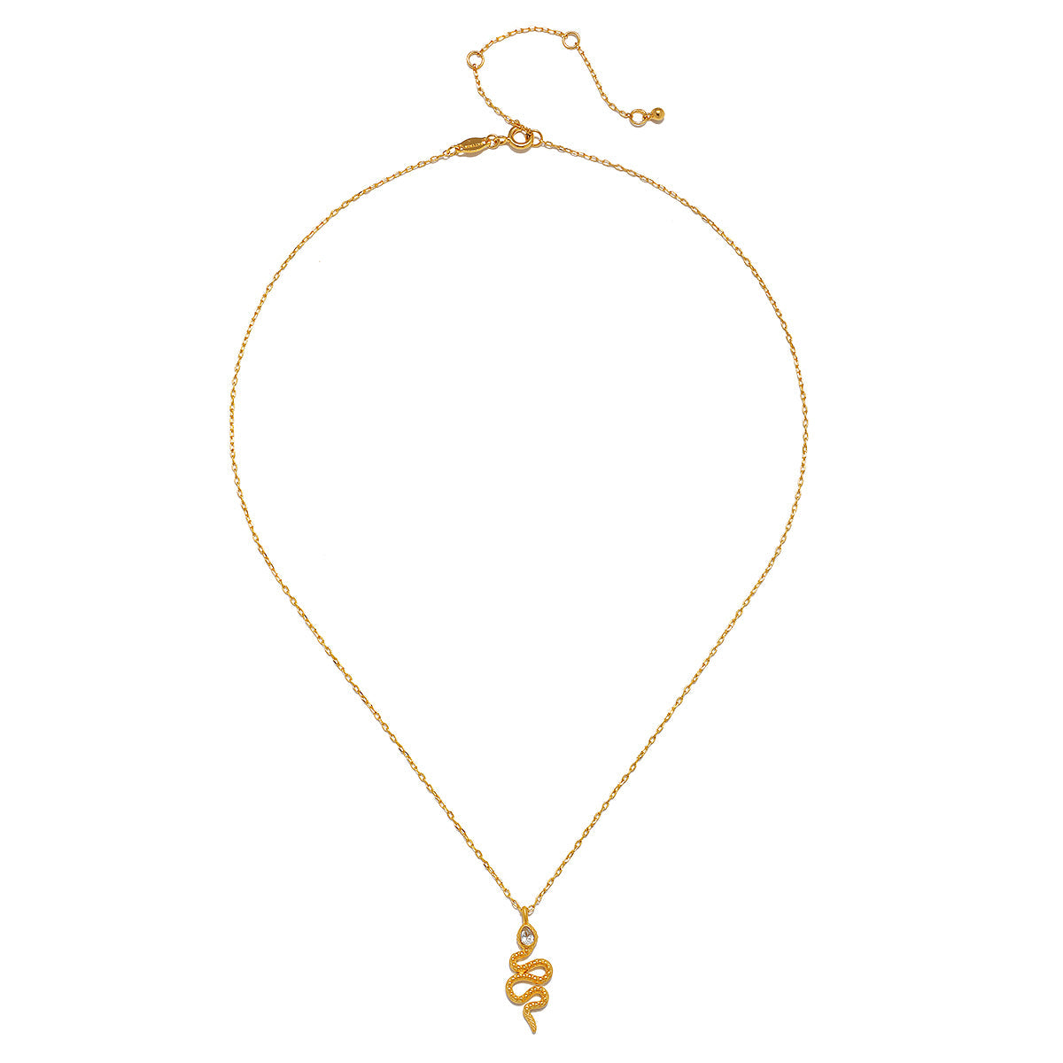 The enduring individuality white topaz snake necklace celebrates the beauty of individuality and eternity. The serpent pendant, symbolizing energy and immortality, is enhanced by sparkling white topaz, making this necklace a stunning and meaningful accessory.