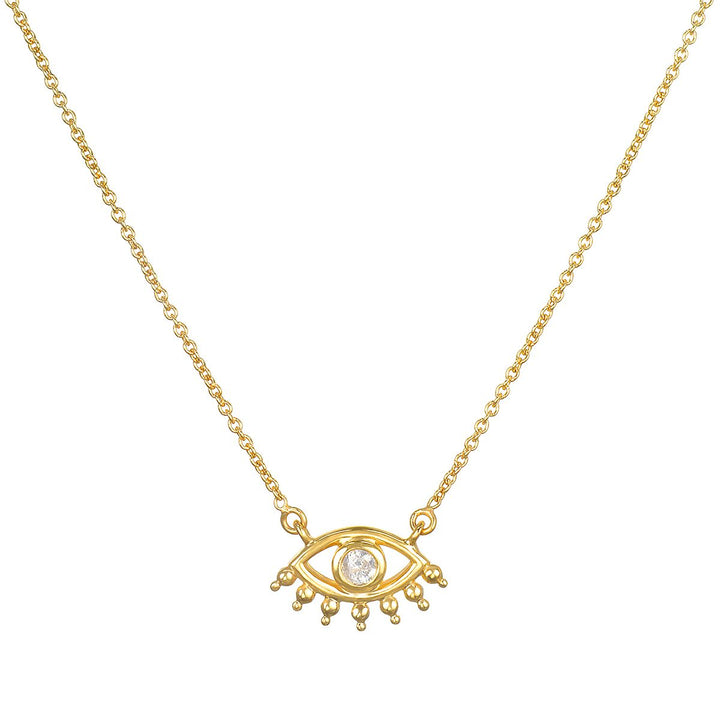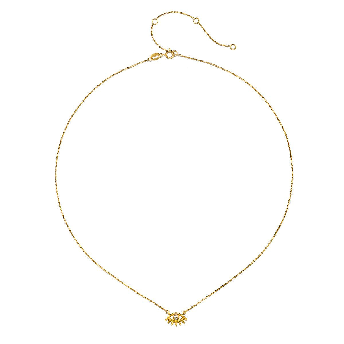 The evil eye diamond 14kt gold necklace offers protection and guidance with its 14kt gold evil eye pendant, adorned with a brilliant diamond. This timeless piece is perfect for those seeking a delicate, meaningful accessory that can be cherished for generations.