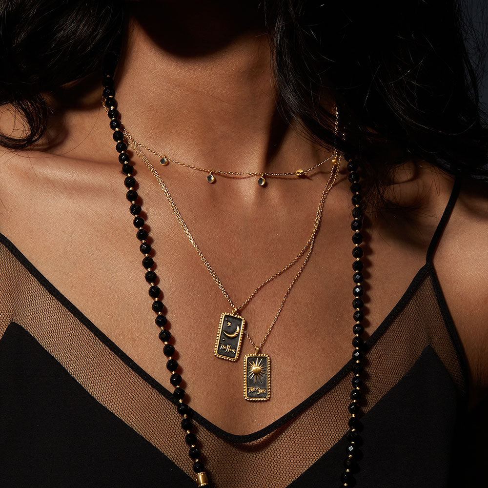 Let the Star Tarot necklace guide you with its message of hope and inspiration. The white topaz accents highlight its celestial beauty, making it a piece that embodies creativity and awareness.