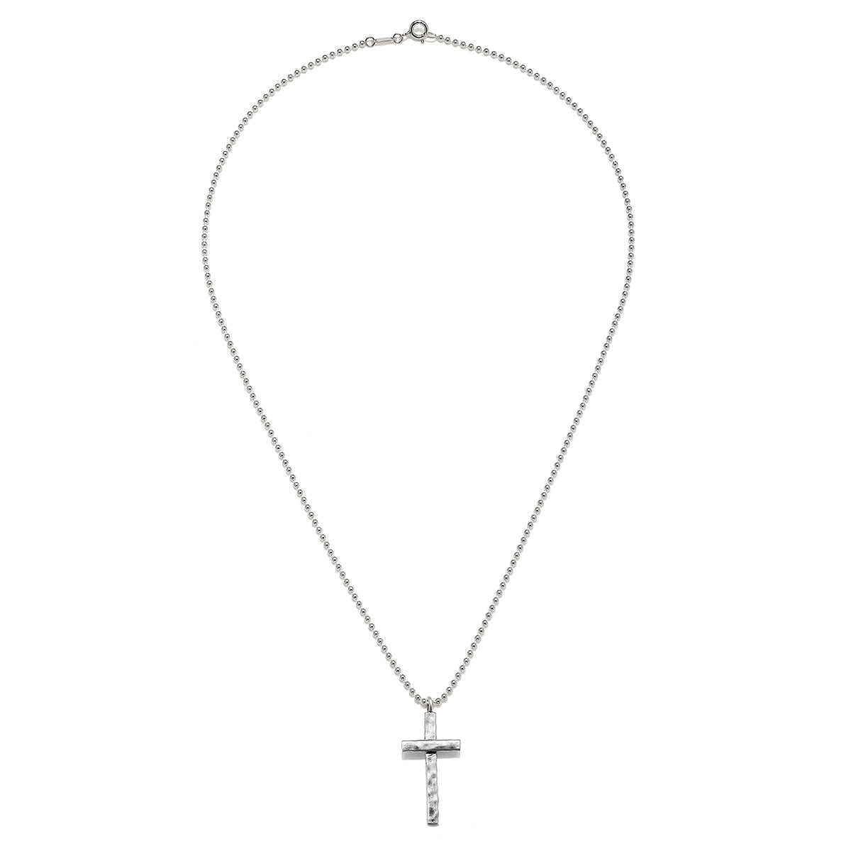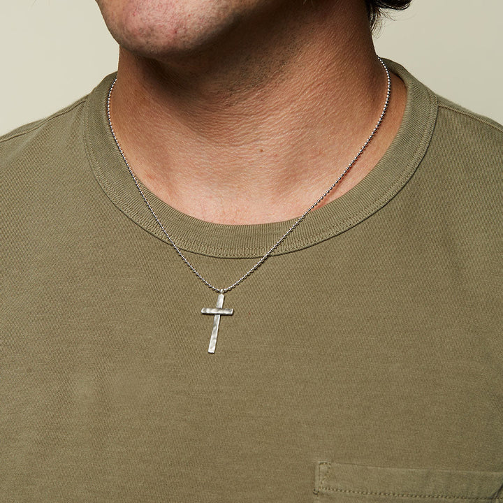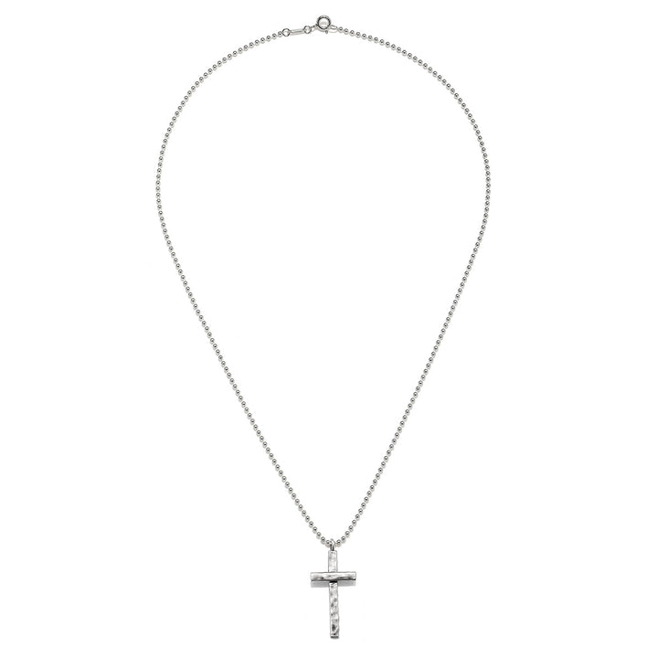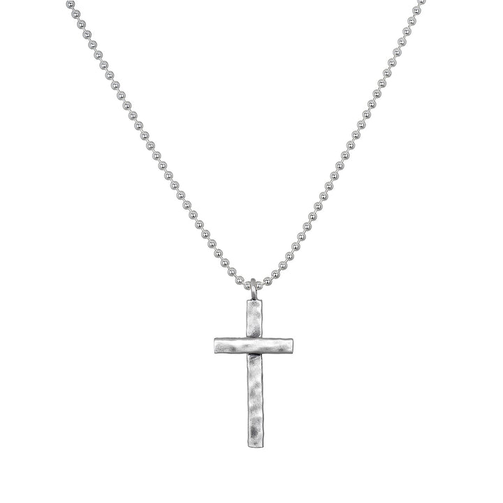 This hammered cross necklace is a powerful symbol of faith and devotion. The sterling silver beaded chain adds a timeless touch, guiding you to your highest truth with every wear.