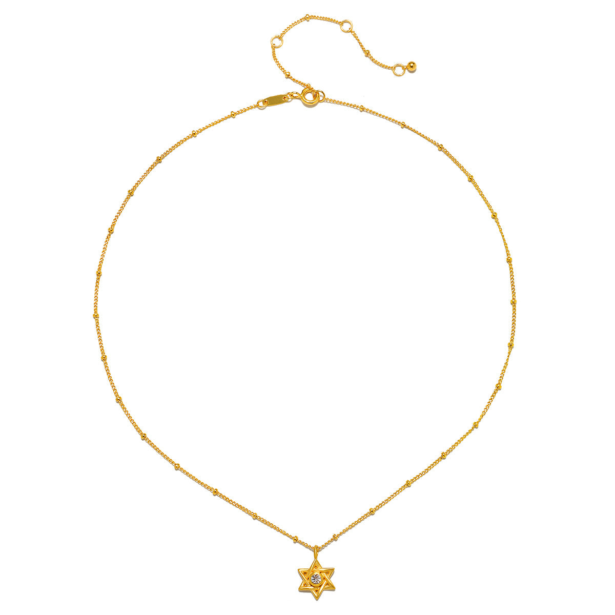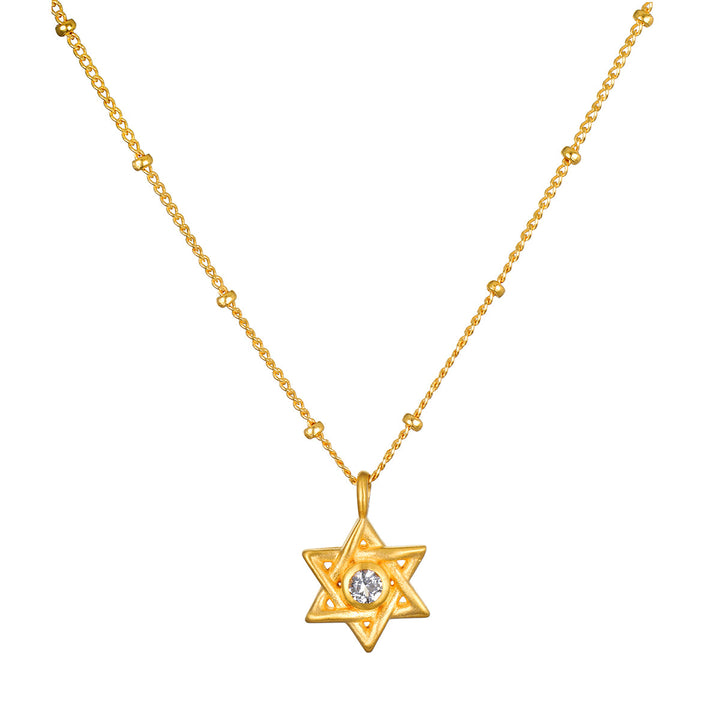 A meaningful necklace featuring the Star of David, symbolizing faith and hope. At its center lies a white topaz, enhancing the piece with creativity and awareness, perfect for connecting with faith and spirituality.