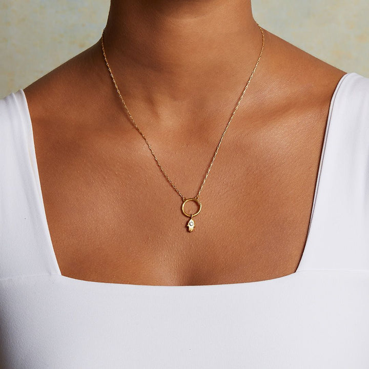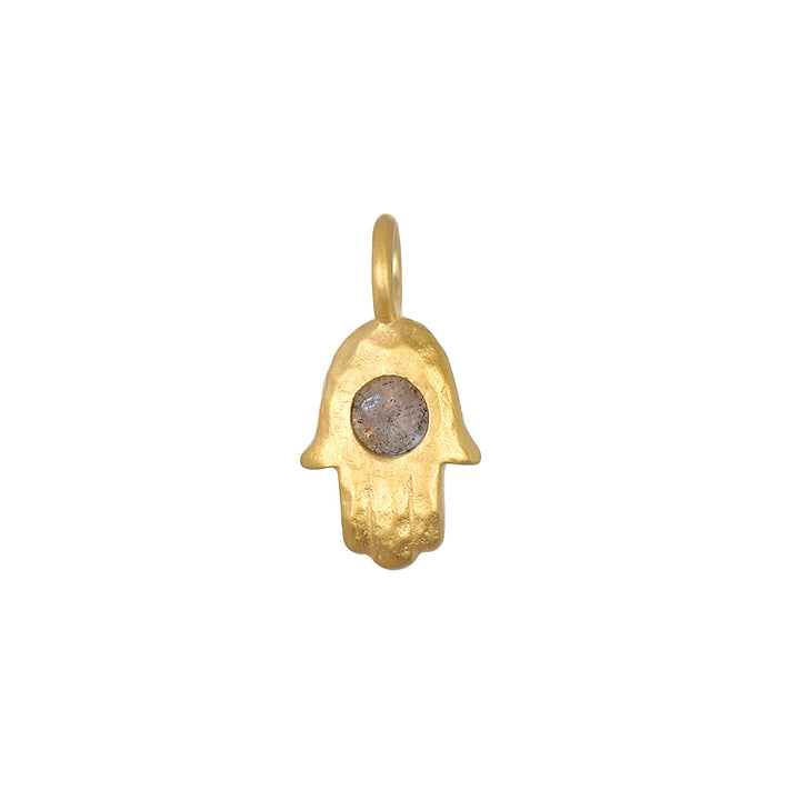 Style Notes: An 18kt gold plated hamsa charm offers protection and blessings, accented with a labradorite stone for imagination and truth. Add this meaningful charm to your personalized necklace for a touch of spiritual guidance.
