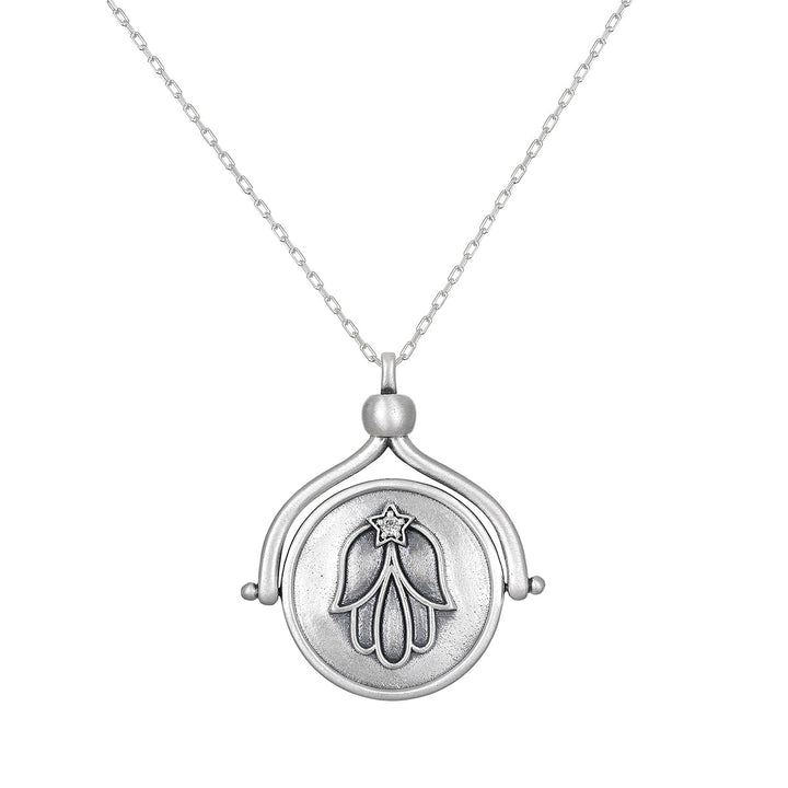 In Safekeeping Hamsa & Eye Silver Spinning Necklace