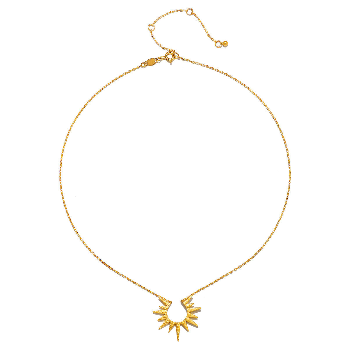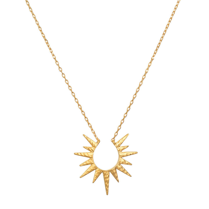 This 18kt gold plated starburst necklace symbolizes dreams and inspiration with its open-work design. The brilliant starburst creates a stunning, eye-catching piece perfect for any occasion.