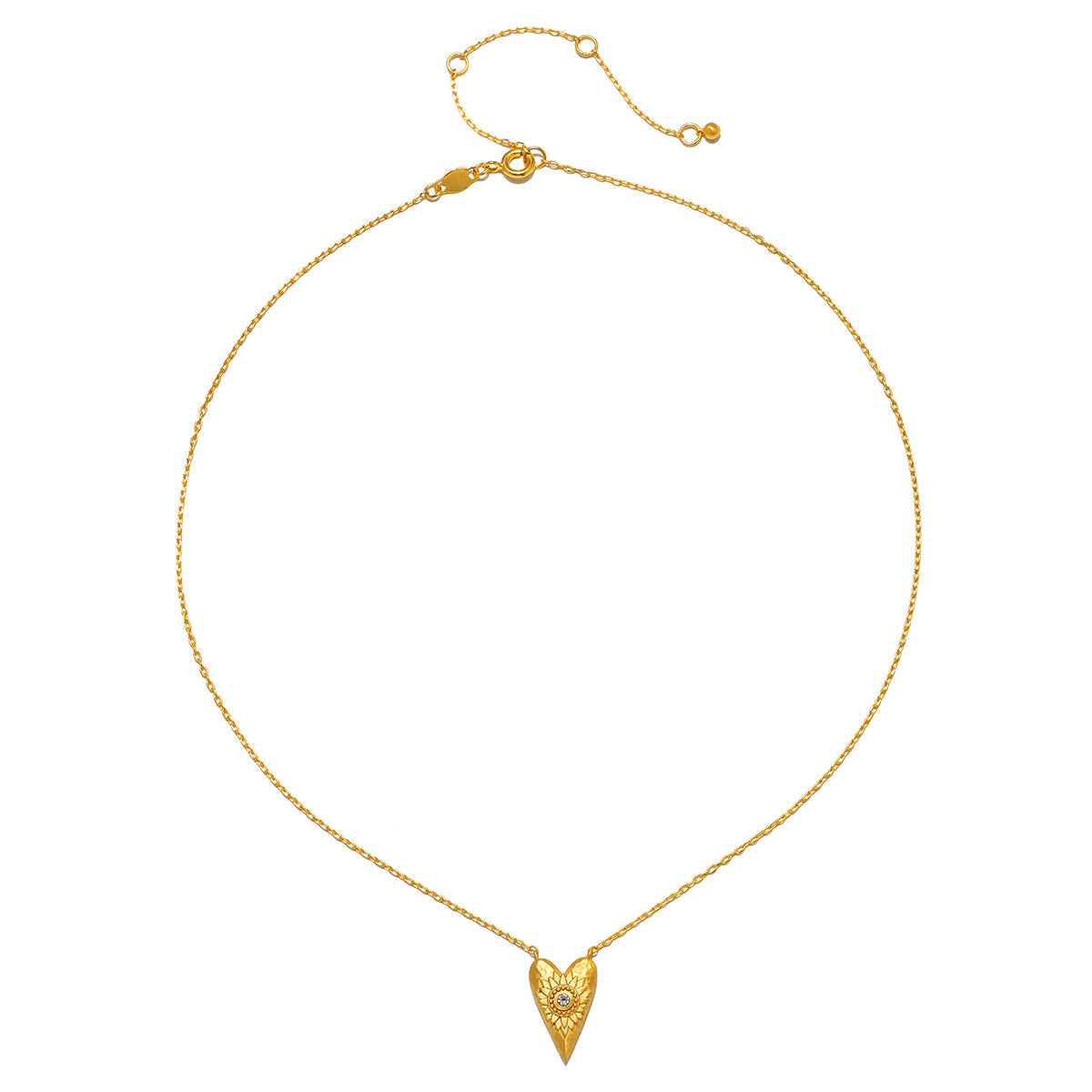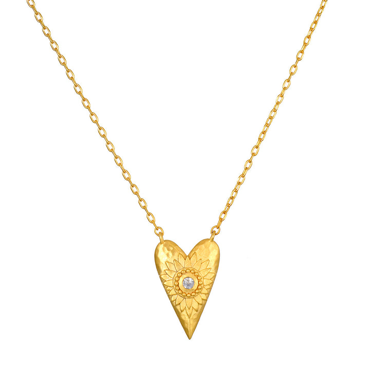 This heart pendant necklace in 18kt gold plate is inscribed with a detailed flower and accented with white topaz. The back features the mantra 'I Am Loved,' making this necklace a beautiful symbol of love and compassion.