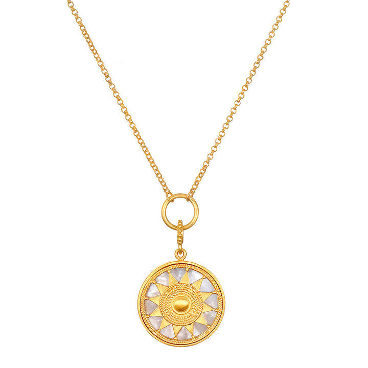 The Inward Journey Pearl Mandala Necklace reflects spiritual growth and self-discovery. With a gleaming mandala pendant and lustrous mother of pearl, this necklace represents the Universe’s infinite cycle and the sacred connection of all things.
