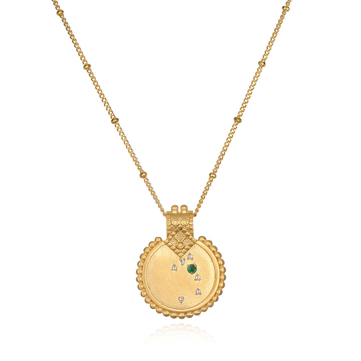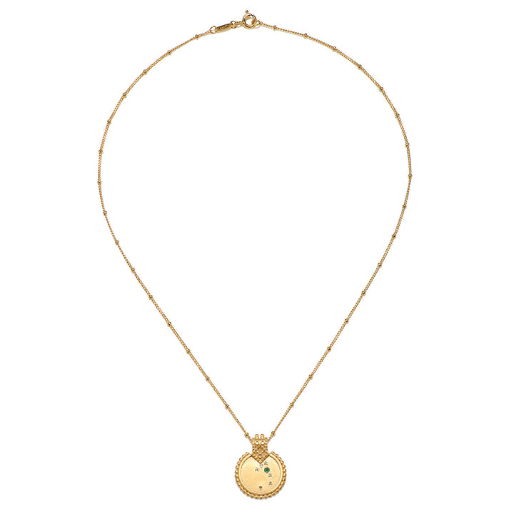 This elegant 18kt gold plated necklace showcases an emerald pendant, embodying the grounded and sensual spirit of Taurus. The rich green hue represents love and romance, making it a perfect gift for those born between April 20th and May 20th, celebrating their nurturing qualities.