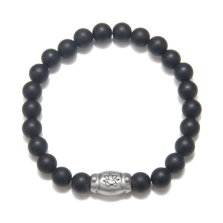 This stylish men's stretch bracelet features matte black onyx beads complemented by a sterling silver barrel bead accent. Its masculine edge is enhanced by the symbolic presence of Ganesha, the Hindu deity known for success and removing obstacles.