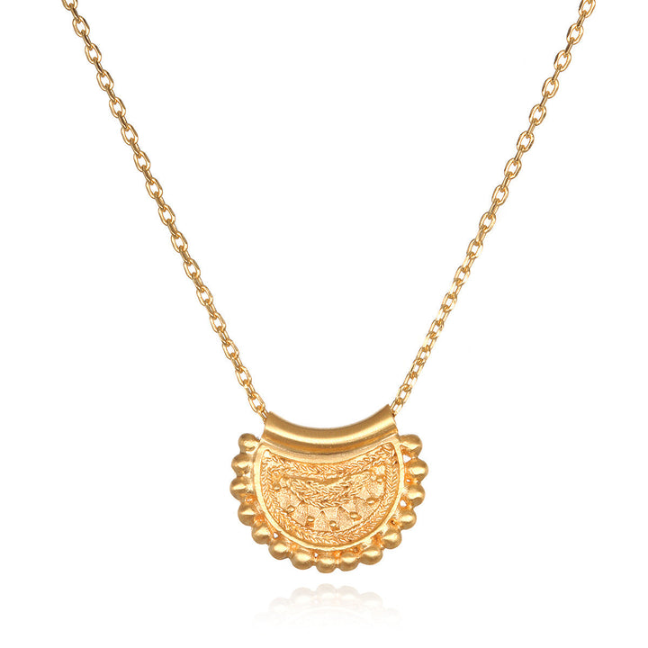 Crafted with 18kt gold plate over brass, the pendant measures 11 x 15mm. Necklace length is 18 inches.
