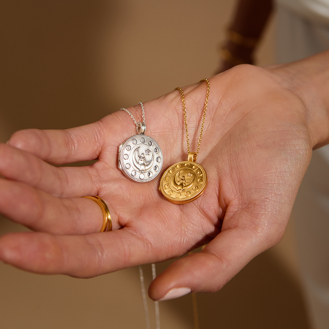 Mother Moon Silver Locket Necklace
