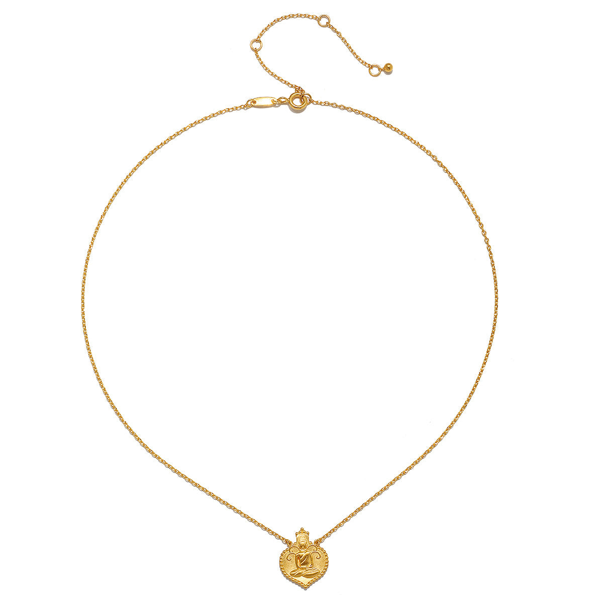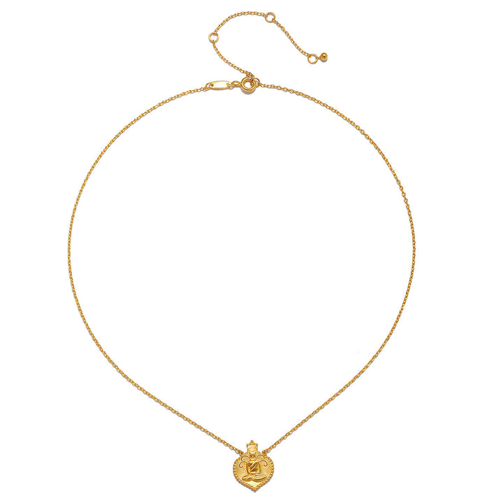 This peaceful Buddha gold necklace features a heart-shaped pendant engraved with Buddha in the lotus position, symbolizing wisdom and growth. It’s perfect for daily wear, providing a sense of calm and connection to your spiritual side.