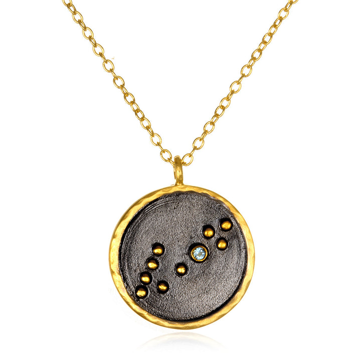 The Pisces zodiac necklace features the symbolism of the twin fish, representing intuition and emotional depth. With aquamarine as the birthstone, this necklace is both stylish and significant for those born under this sign.