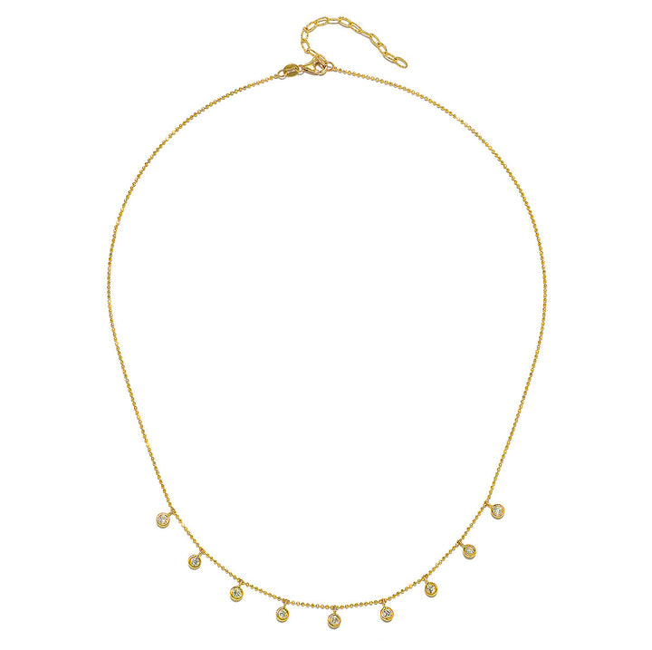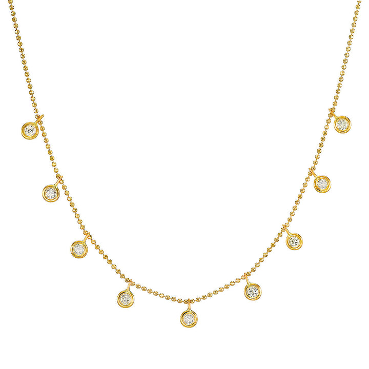 The Scatter Joy 14kt Solid Gold Diamond features a full cut diamond bezel set charm that adds brilliance to a solid gold necklace, ideal for making a statement.