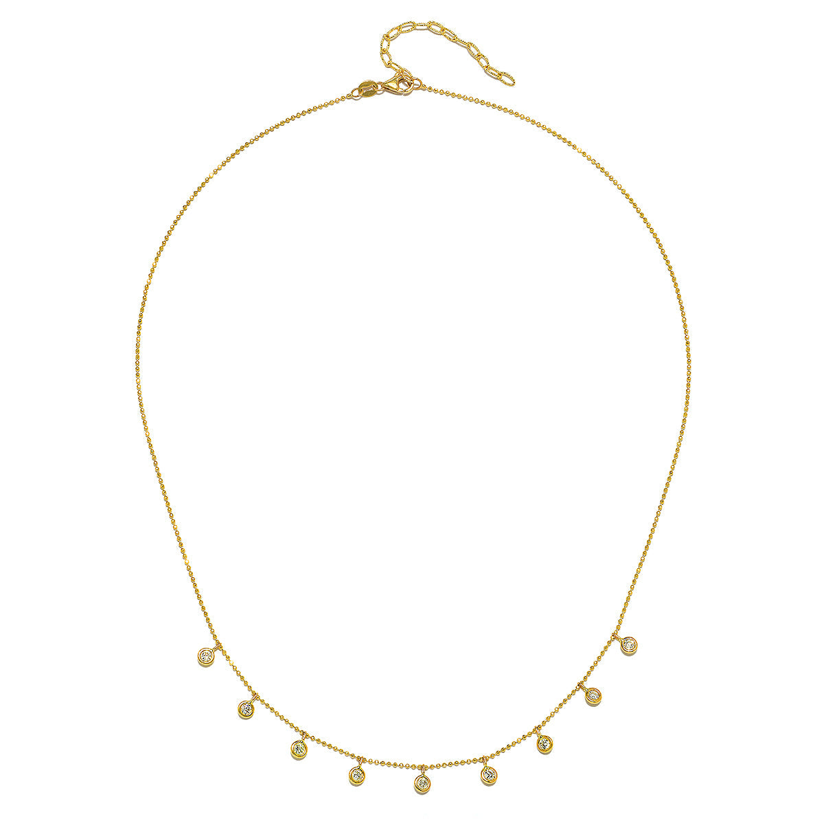 Constructed from 14kt solid gold, with a stone size of 2.5mm and a length of 16' + 2' extension chain.