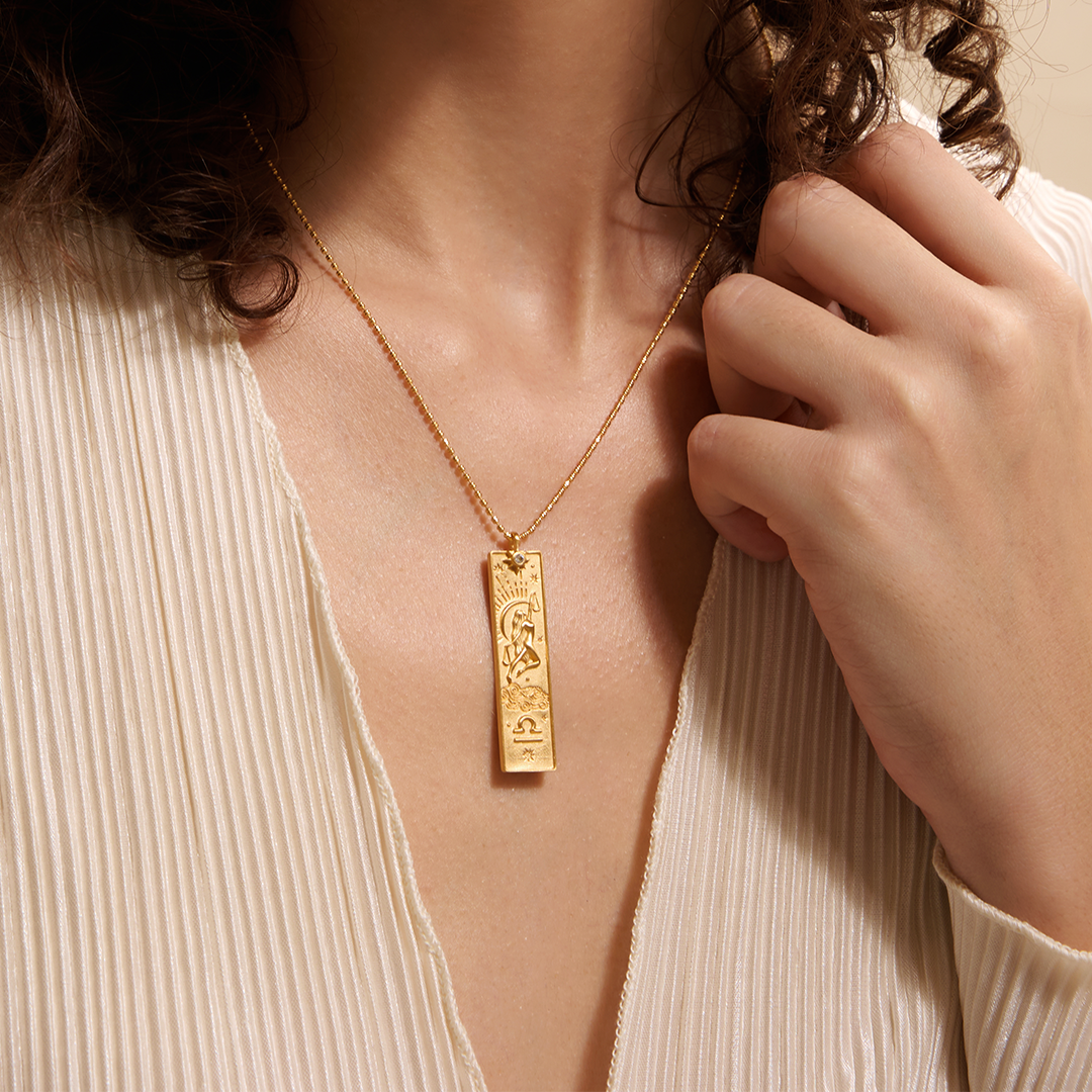 The Libra Zodiac Necklace embodies the essence of balance and harmony, reflecting the charming and free-spirited nature of Libra. Crafted with an 18kt gold-plated pendant, it features a radiant white topaz that symbolizes individuality and creativity. This adjustable-length necklace allows you to express your unique personality while seeking fairness and equality in your interactions, making it a versatile accessory for any occasion.