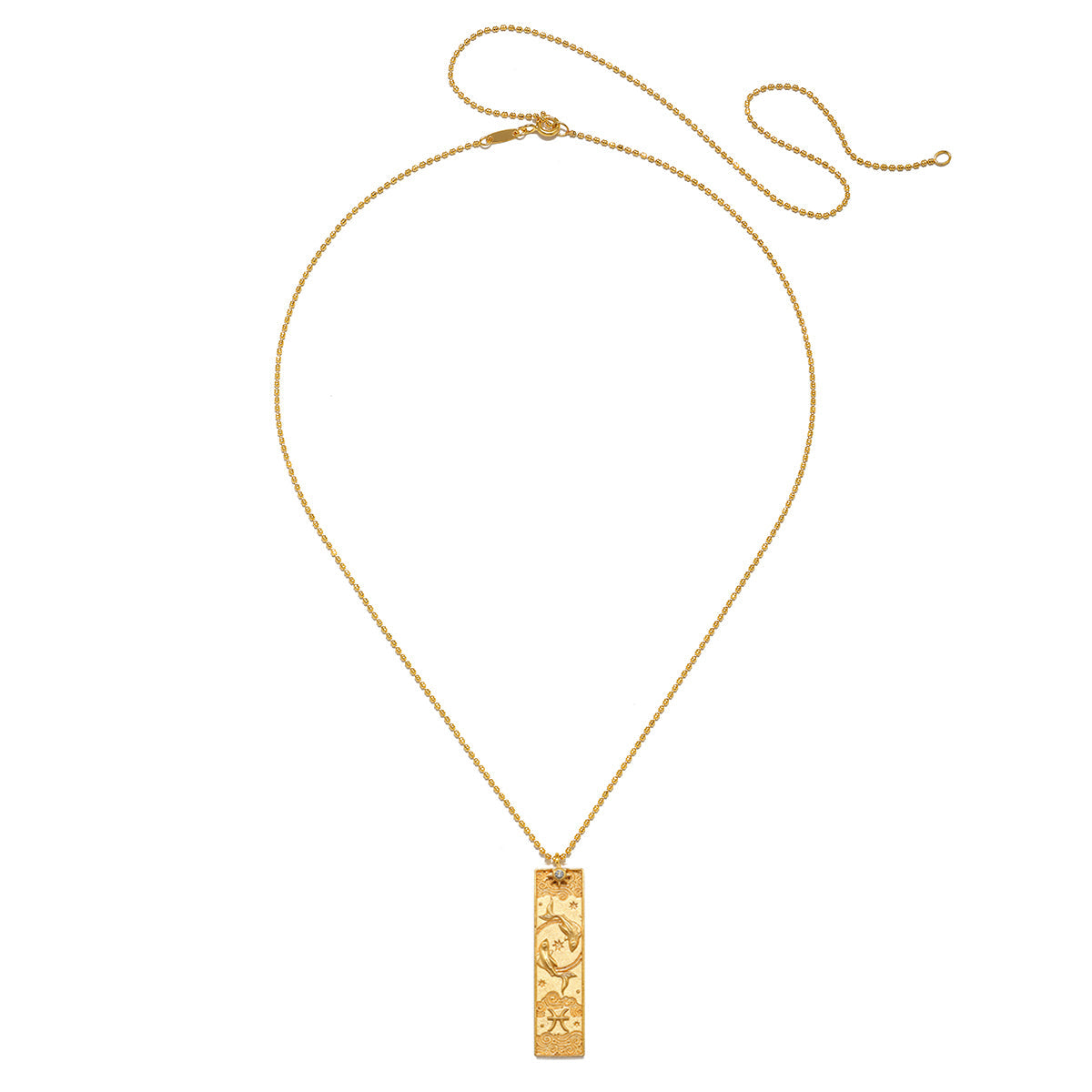 The Pisces Zodiac Necklace captures the essence of empathy and intuition, reflecting the dual nature of this water sign. Crafted from 18kt gold plate, the pendant features a radiant white topaz that symbolizes individuality and creativity. This adjustable-length necklace allows you to express your unique personality while navigating the depths of your emotions and dreams, making it a meaningful addition to your jewelry collection.