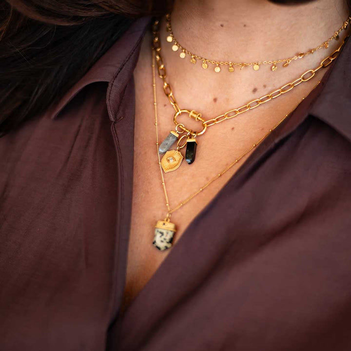 The Protect Your Power Charm features a dagger-shaped black onyx charm, symbolizing endurance and perseverance—a powerful reminder of your strength.
