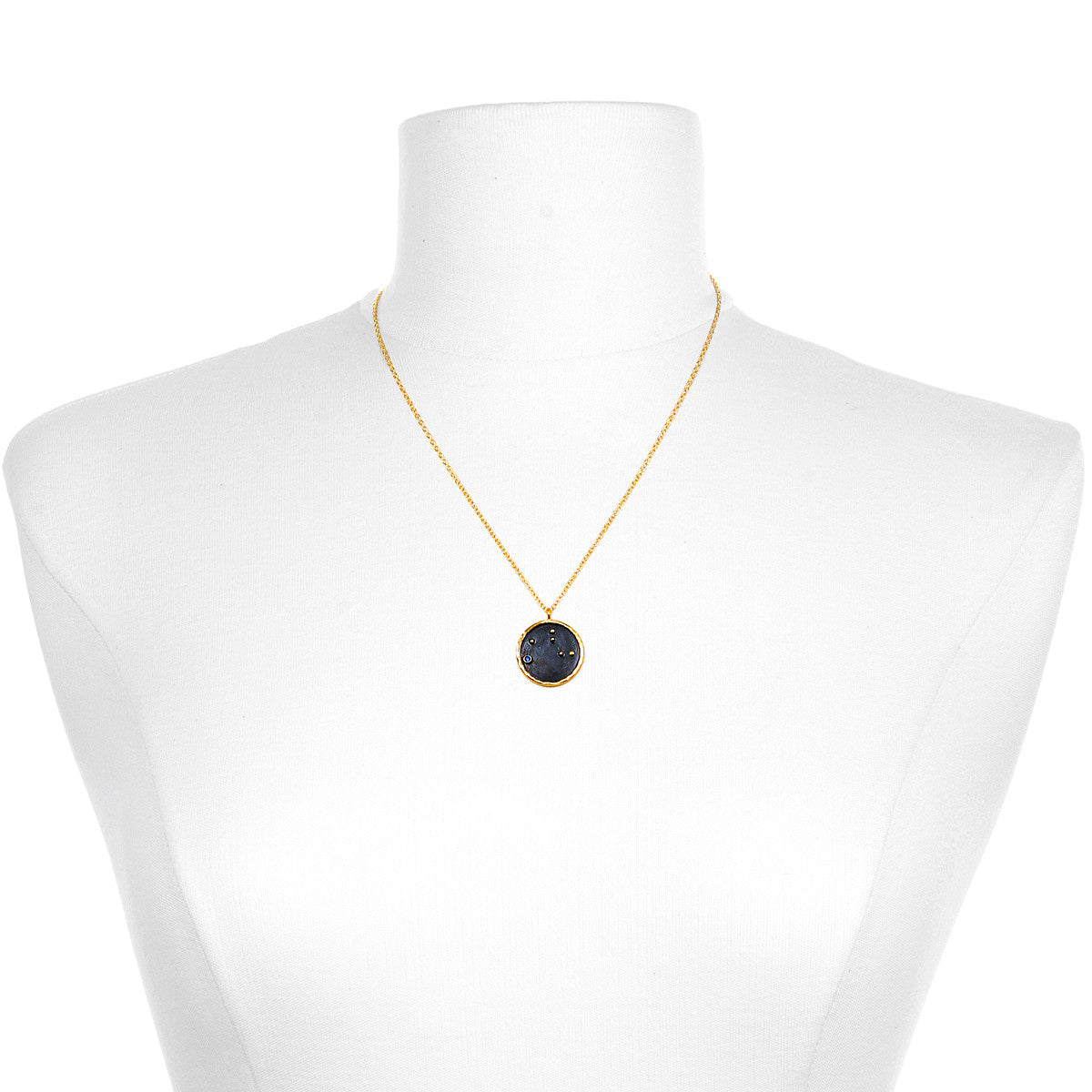 Made from 18kt gold plate and gunmetal over brass, with a pendant diameter of 0.8'' and a necklace length of 18''.