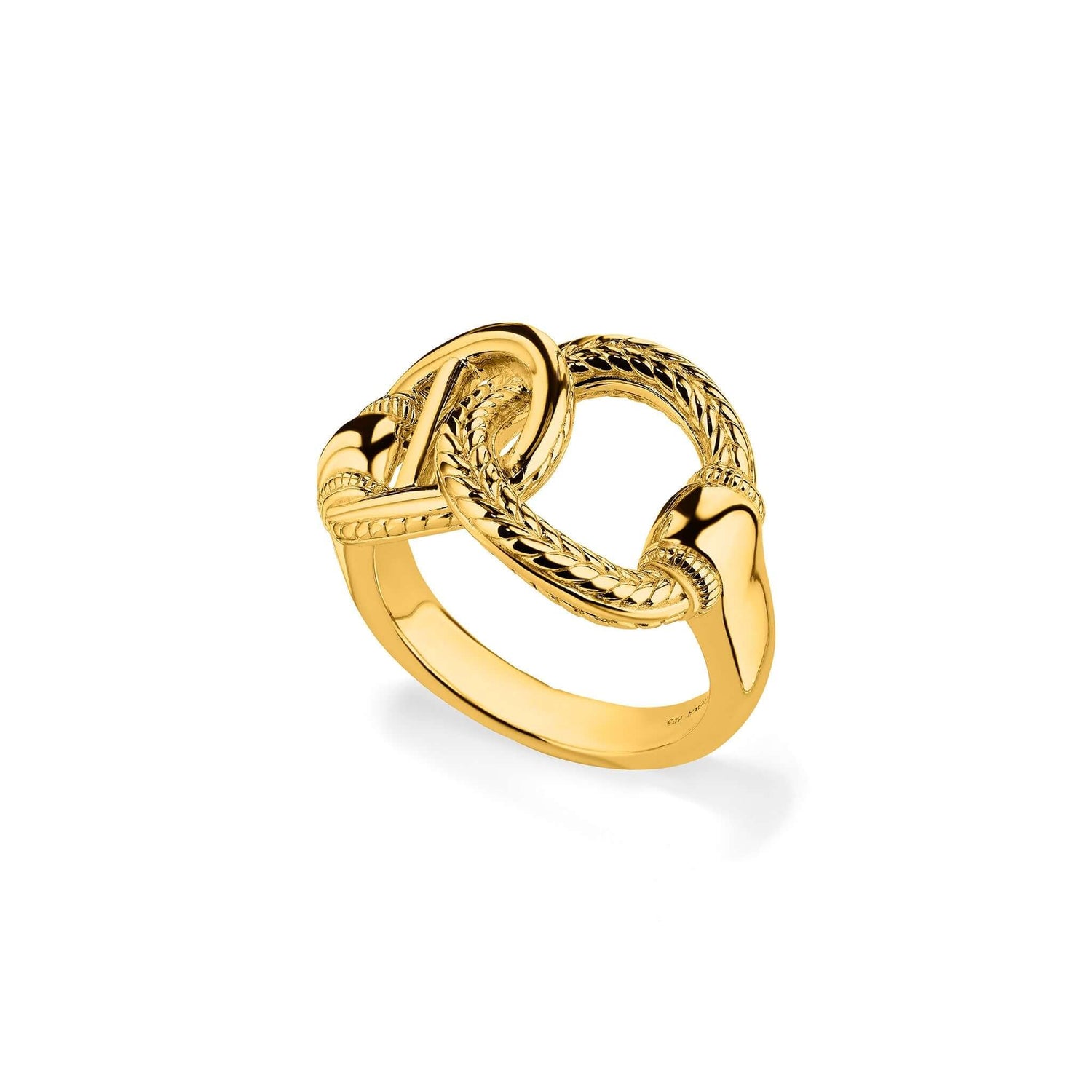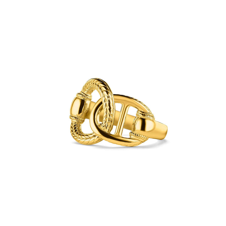 Judith Ripka founded her iconic namesake brand in New York City in 1977. Starting from her living room as a single mother in her 20s, little did she know she would build a jewelry empire. Passionate about jewelry that fit effortlessly into a woman's life and embodied their wishes, dreams and meaningful moments, Ripka's designs captivated hearts worldwide. Her signature creations are renowned for their intricate detailing, vibrant gemstones and exquisite craftsmanship. Today her legacy continues to inspire.Style notes: Ripka's Interlocking Ring features classic equestrian details in 18k gold. Inspired by the traditional hardware found on saddles, straps, and horse harnesses-- this ring references those elements through sleek links interlocked with signature rope texture for a subtle yet exquisite statement.Price: Please note price may vary due to exchange rate differences or shipping, duties and taxes. Price may also vary with materials choice. Final price is calculated at checkout at the designer's website. Materials: 18k gold.
