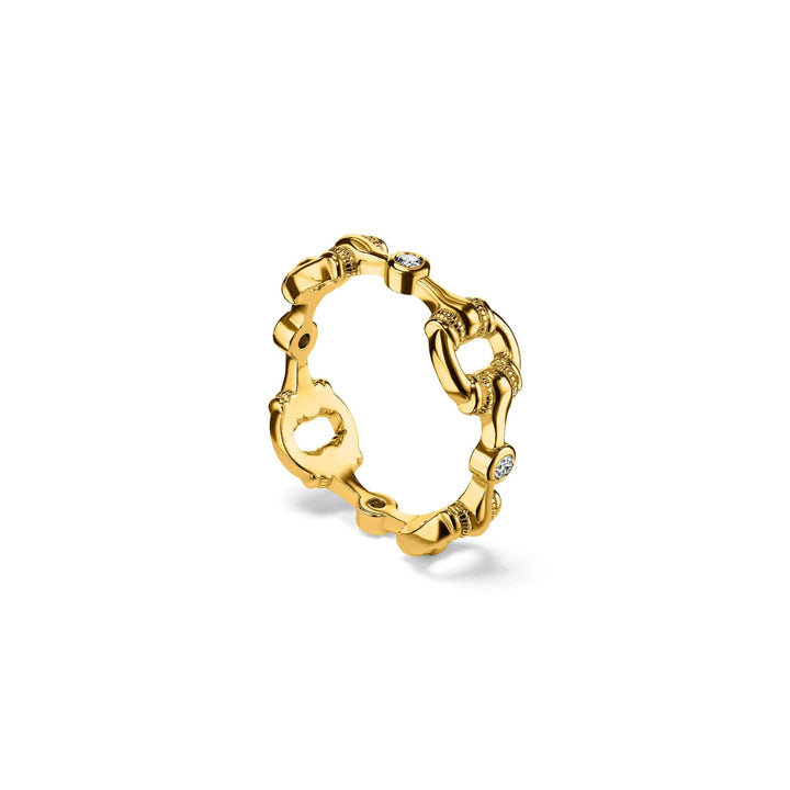 Judith Ripka founded her iconic namesake brand in New York City in 1977. Starting from her living room as a single mother in her 20s, little did she know she would build a jewelry empire. Passionate about jewelry that fit effortlessly into a woman's life and embodied their wishes, dreams and meaningful moments, Ripka's designs captivated hearts worldwide. Her signature creations are renowned for their intricate detailing, vibrant gemstones and exquisite craftsmanship. Today her legacy continues to inspire.Style notes: Ripka's Vienna Stack Ring reflects the precise, orchestrated, movements and routines executed by the elegant Lipizzaner horse. The collection embodies the grace and excellence of the spectacular breed and equestrian experience.Price: Please note price may vary due to exchange rate differences or shipping, duties and taxes. Price may also vary with materials choice. Final price is calculated at checkout at the designer's website. Materials: 18k gold with diamond. Dimensions: Width: ¼'.