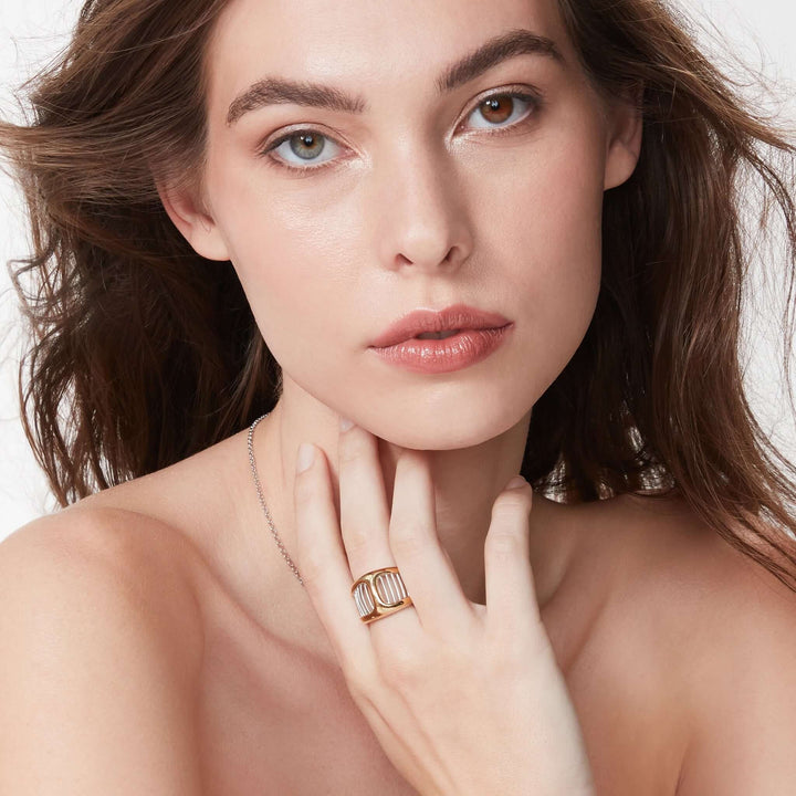 Judith Ripka founded her iconic namesake brand in New York City in 1977. Starting from her living room as a single mother in her 20s, little did she know she would build a jewelry empire. Passionate about jewelry that fit effortlessly into a woman's life and embodied their wishes, dreams and meaningful moments, Ripka's designs captivated hearts worldwide. Her signature creations are renowned for their intricate detailing, vibrant gemstones and exquisite craftsmanship. Today her legacy continues to inspire.Style notes: The Cielo collection is for the woman on a journey of her own making, seeking new perspectives and finding beauty along the way. The collection features sleek, sterling silver designs inspired by movement.Price: Please note price may vary due to exchange rate differences or shipping, duties and taxes. Price may also vary with materials choice. Final price is calculated at checkout at the designer's website. Materials: Sterling silver and 18k gold. Dimensions: Width: ¾'.