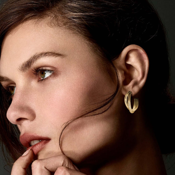 Judith Ripka founded her iconic namesake brand in New York City in 1977. Starting from her living room as a single mother in her 20s, little did she know she would build a jewelry empire. Passionate about jewelry that fit effortlessly into a woman's life and embodied their wishes, dreams and meaningful moments, Ripka's designs captivated hearts worldwide. Her signature creations are renowned for their intricate detailing, vibrant gemstones and exquisite craftsmanship. Today her legacy continues to inspire.Style notes: Ripka's Eternity Round Hoops were inspired by the everlasting love in our life, with interwoven sculptural designs of texture and high polish, all which come together to form the eternal symbol that is the centerpiece of this collection.Price: Please note price may vary due to exchange rate differences or shipping, duties and taxes. Price may also vary with materials choice. Final price is calculated at checkout at the designer's website. Materials: 18k gold.Dimensions: Diameter: ¾'.