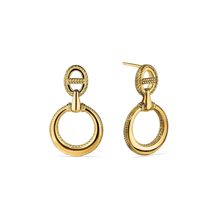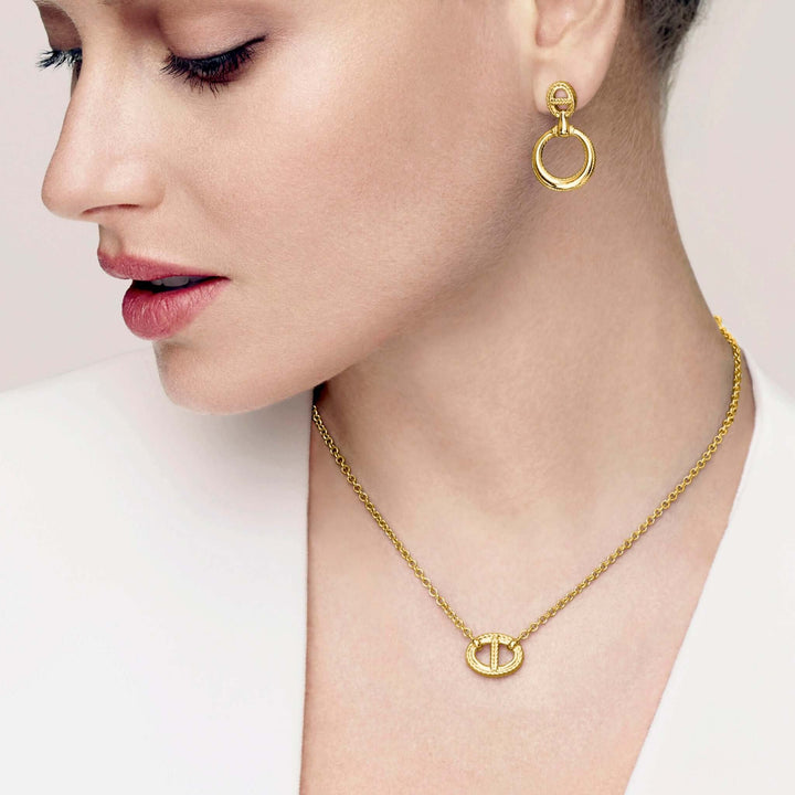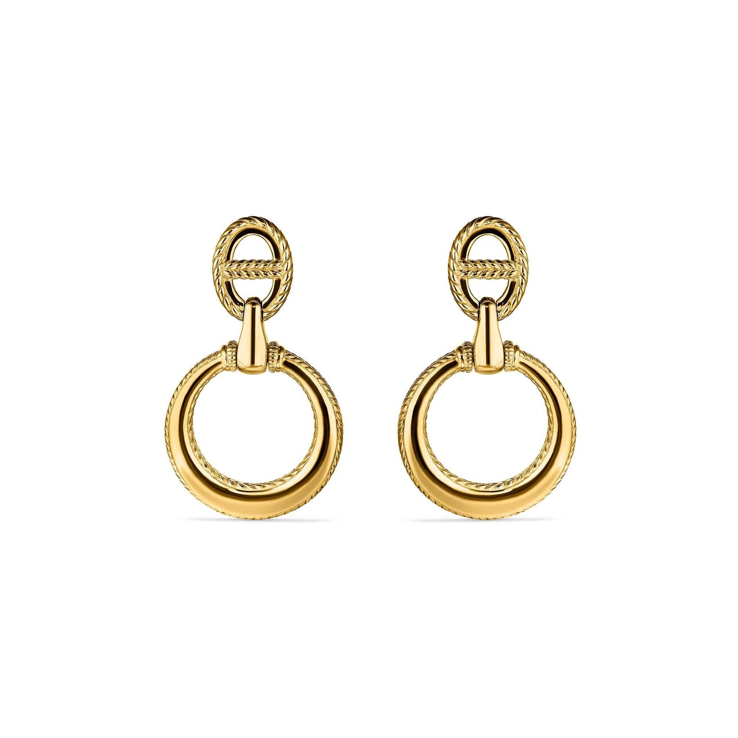 Judith Ripka founded her iconic namesake brand in New York City in 1977. Starting from her living room as a single mother in her 20s, little did she know she would build a jewelry empire. Passionate about jewelry that fit effortlessly into a woman's life and embodied their wishes, dreams and meaningful moments, Ripka's designs captivated hearts worldwide. Her signature creations are renowned for their intricate detailing, vibrant gemstones and exquisite craftsmanship. Today her legacy continues to inspire.Style notes: Simple and sophisticated. This signature earring design can be styled with the bangles from the Vienna Collection. This style was inspired by the details of equestrian hardware along with the precision and refinement of this long-revered art form.Price: Please note price may vary due to exchange rate differences or shipping, duties and taxes. Price may also vary with materials choice. Final price is calculated at checkout at the designer's website. Materials: 18k gold. Dimensions: Length: 1 ¾'.
