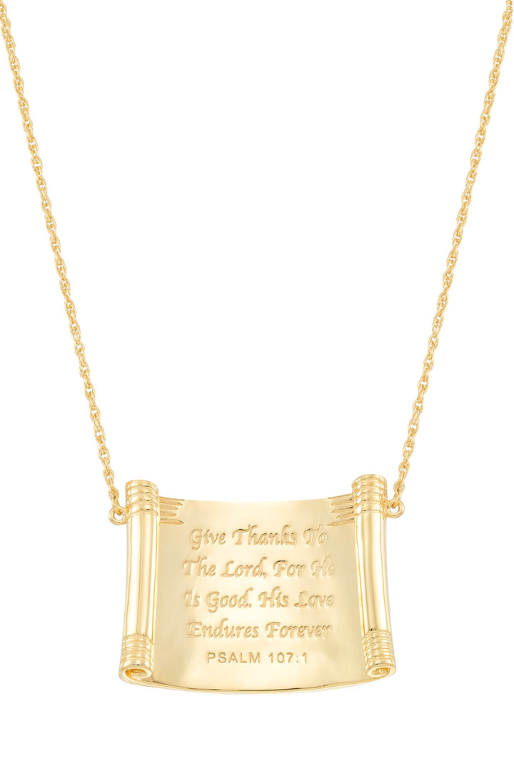 This Psalm 107:1 Necklace by Simone I. Smith serves as a beautiful reminder of gratitude and faith. The engraved message, 'Give thanks to the Lord for He is good. His love endures forever,' adds deep spiritual meaning, making it both stylish and meaningful.