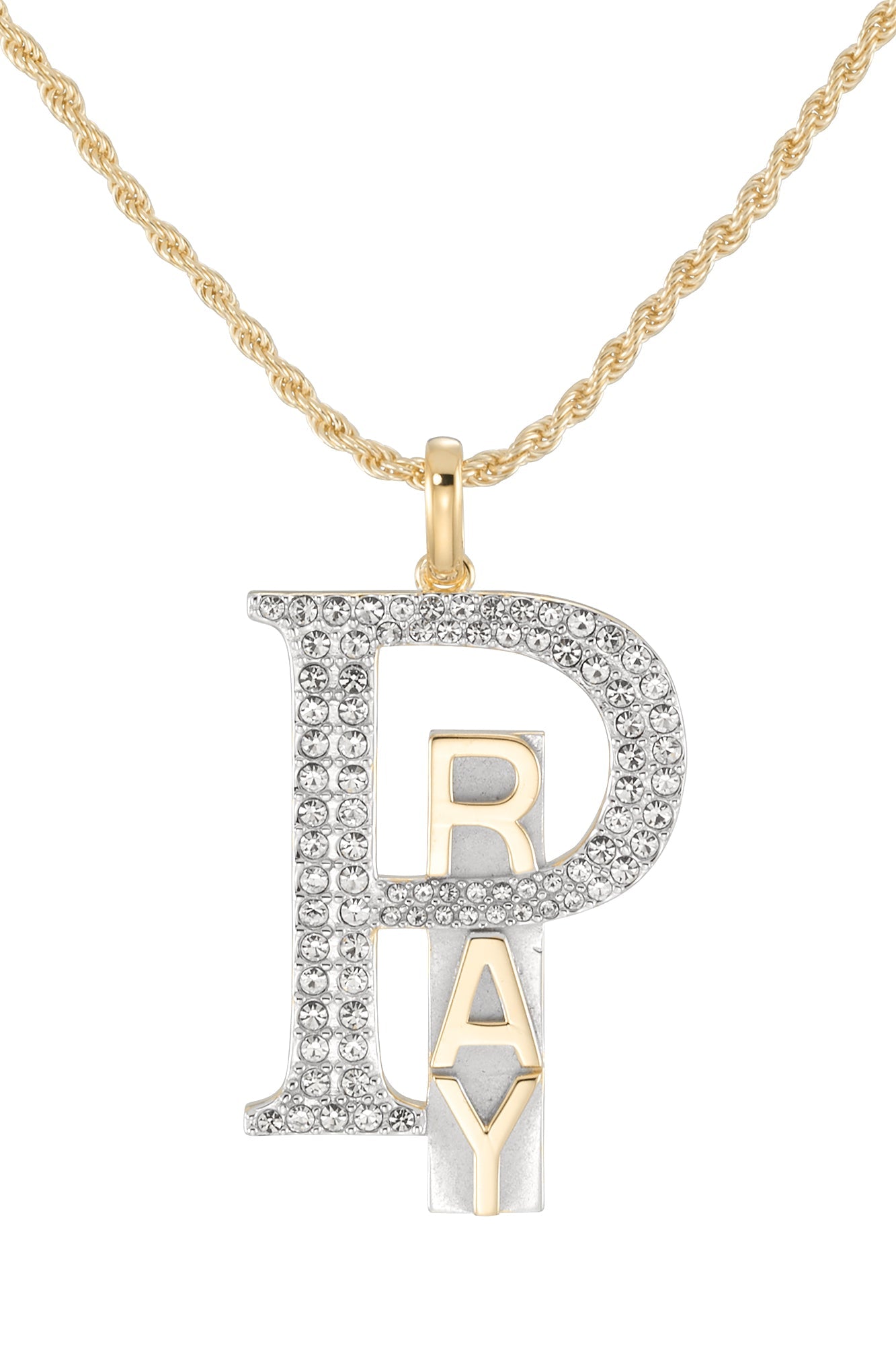 This Pray Nameplate Necklace by Simone I. Smith is a beautiful way to wear your faith. Its elegant nameplate design spells out the word 'Pray,' making it a meaningful addition to your jewelry collection.