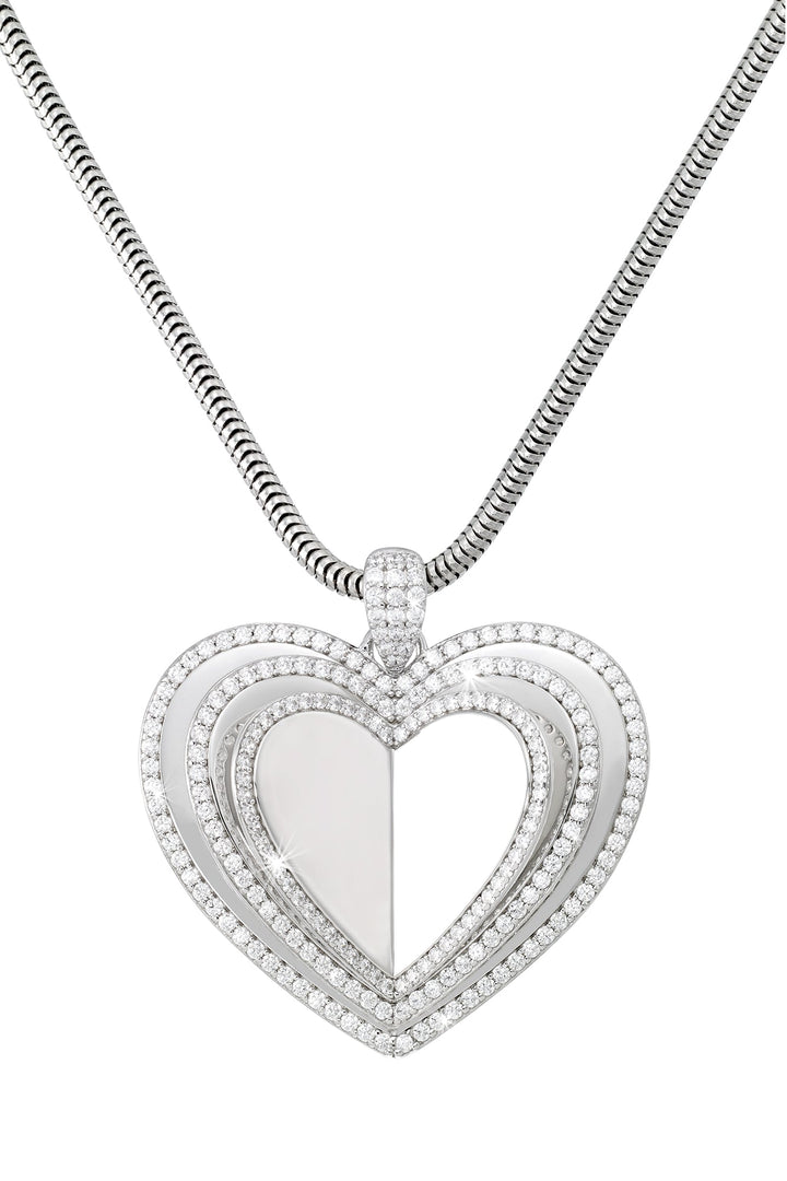 This Book of Love Necklace by Simone I. Smith features a stunning triple heart pendant that represents love and affection. The intricate design and brilliant simulated diamonds make it a perfect gift for a loved one.