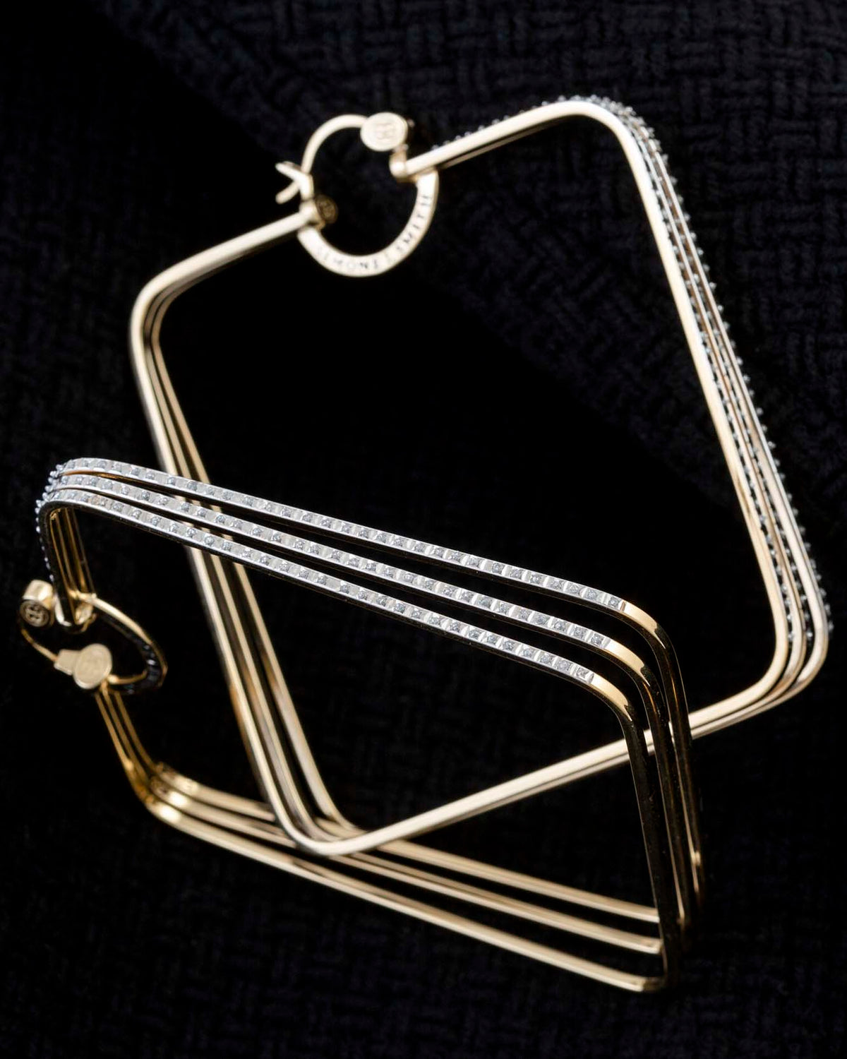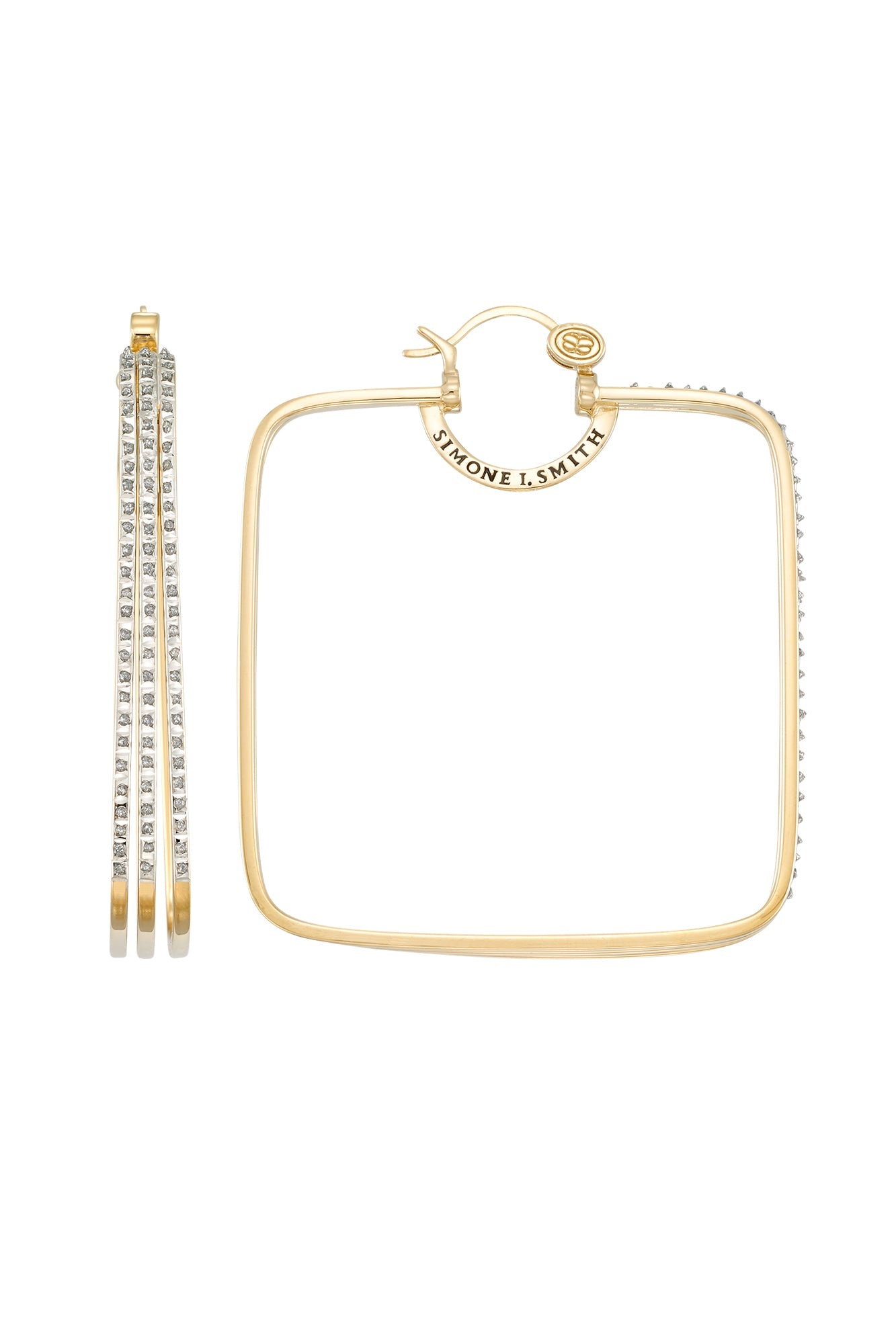 This Galaxy Hoops with Diamond Embellishments by Simone I. Smith feature a square hoop design that combines modern style with sparkling embellishments. Ideal for adding a touch of glamour to any outfit.