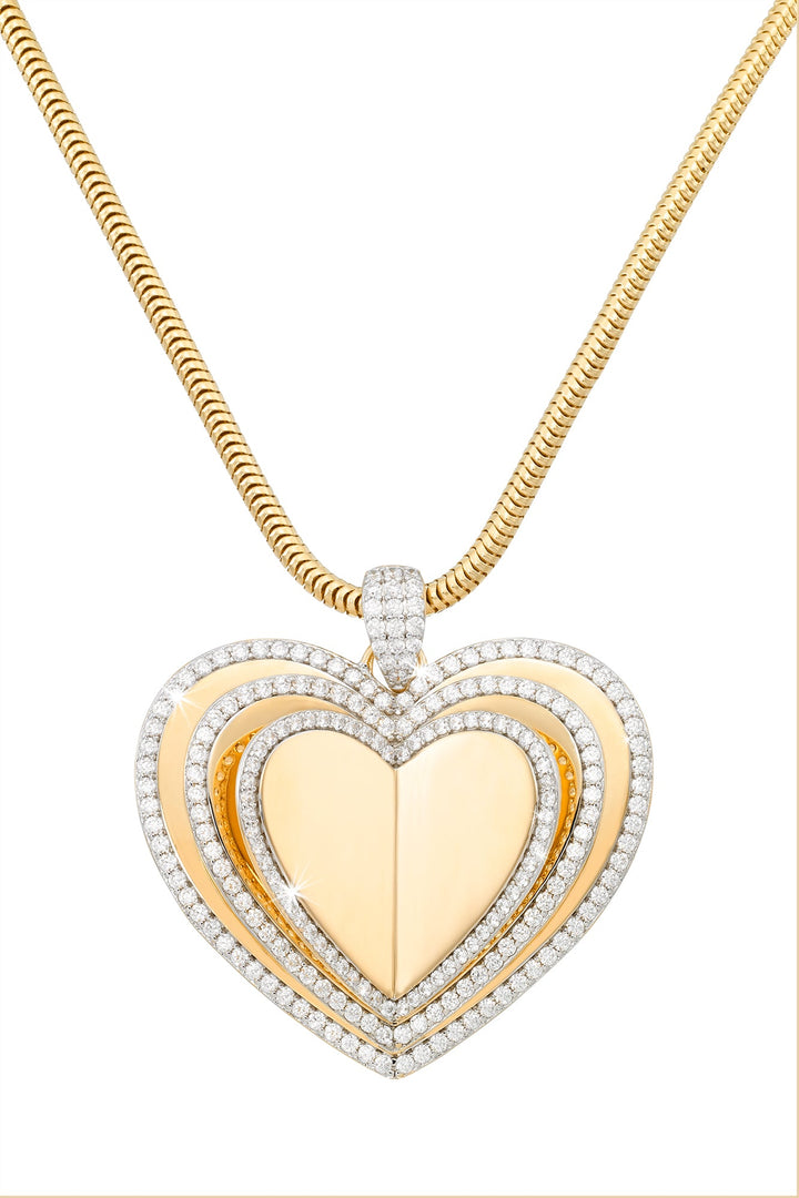 This Book of Love Necklace by Simone I. Smith features the same beautiful triple heart pendant, but in a warm yellow gold tone. A perfect way to show love and appreciation.