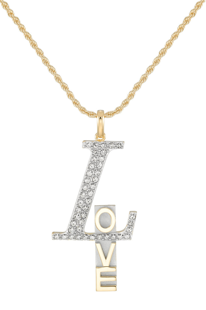 This Love Nameplate Necklace by Simone I. Smith features an elegant nameplate design that spells out 'Love.' It's a meaningful accessory that adds a touch of glamour to any outfit.