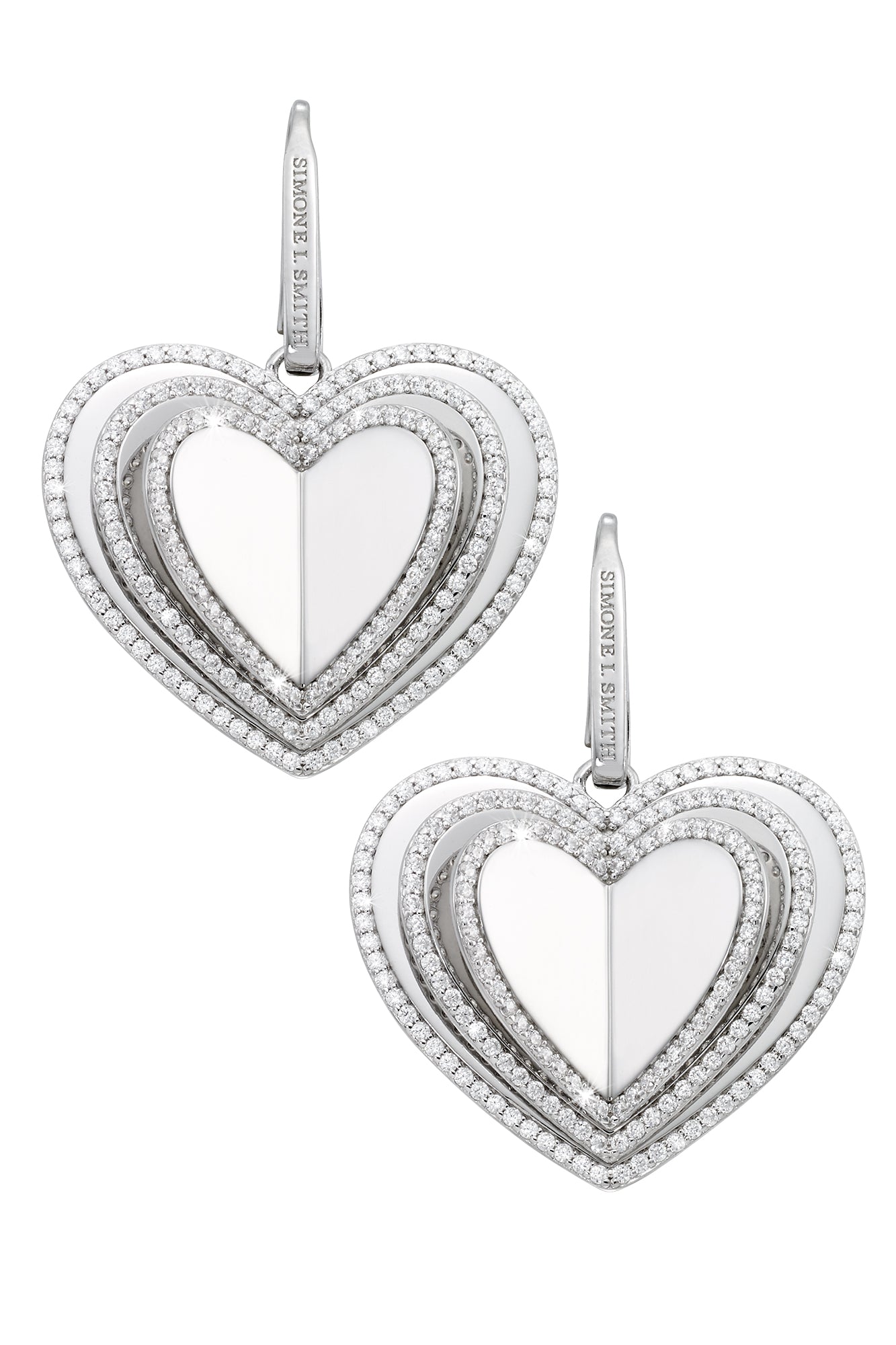 These Book of Love Earrings by Simone I. Smith feature the same beautiful triple heart drop design in a chic platinum tone, adding a modern touch.
