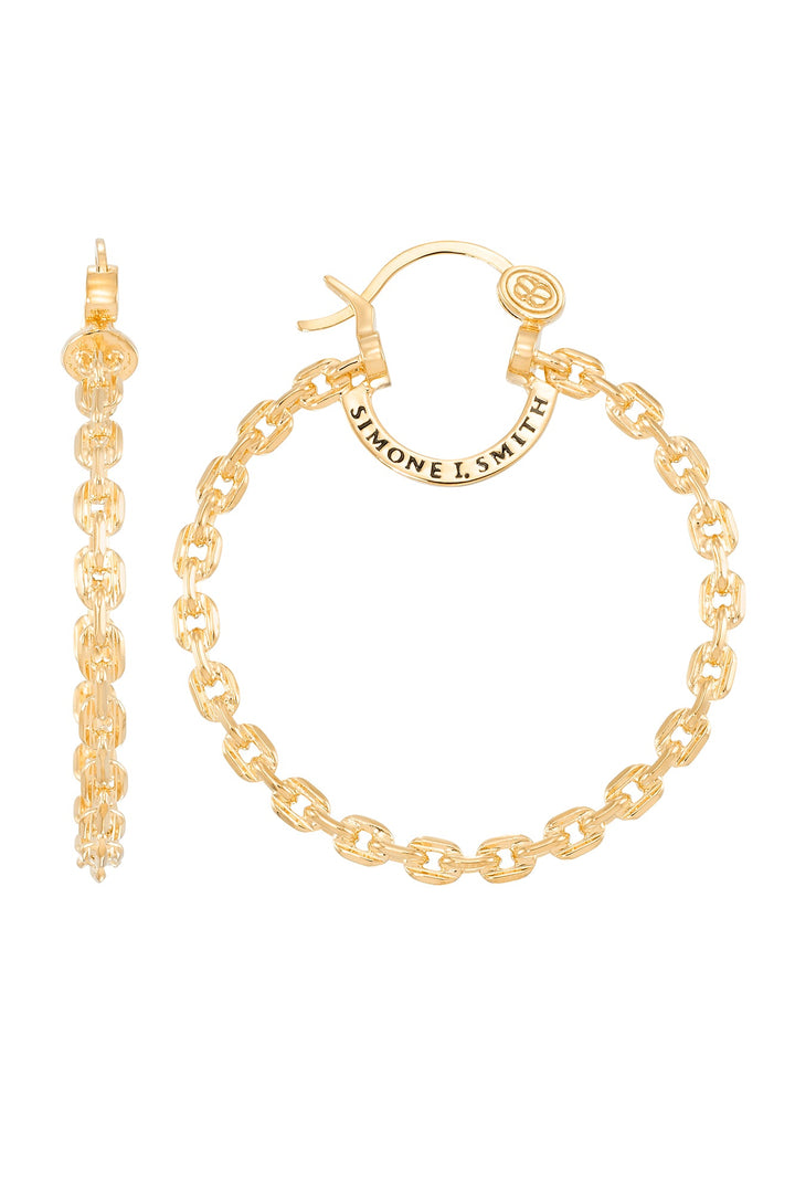 These Linked Forever Hoops by Simone I. Smith showcase a chic chain design that adds a unique touch to your look.