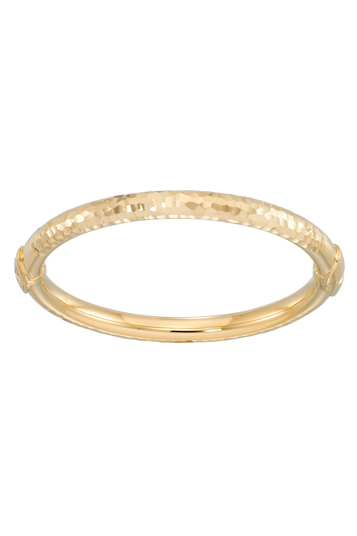 This Rocky Road Bangle Bracelet by Simone I. Smith: This diamond-cut large bangle bracelet in 18kt yellow gold over sterling silver offers a unique design that symbolizes resilience and strength. Its eye-catching texture and bold presence make it a statement piece that can elevate any outfit. Perfect for layering or wearing alone, this bangle represents style and sophistication.