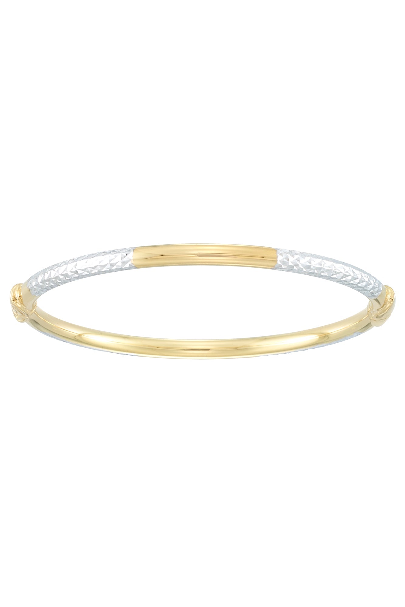 This Chardonnay Bangle Bracelet by Simone I. Smith: This two-tone large bangle bracelet in 18kt yellow gold and platinum over sterling silver combines elegance and modern style. Its sleek design symbolizes balance and harmony, making it an ideal accessory for any occasion. Perfect for wearing alone or stacking with other bracelets for a personalized look.