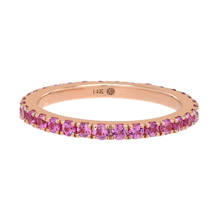 14k rose gold with 1.00 carats Sri Lankan fancy pink sapphires.