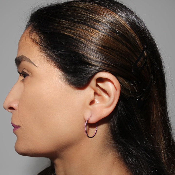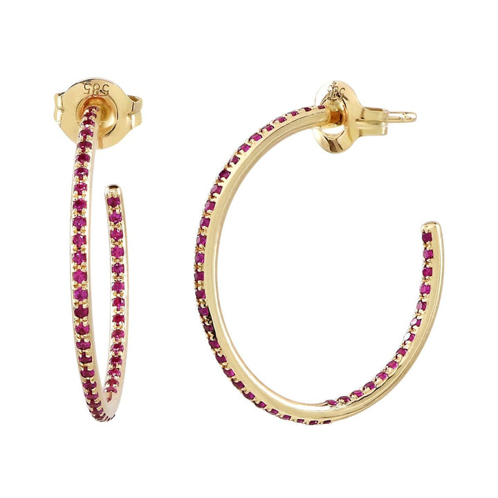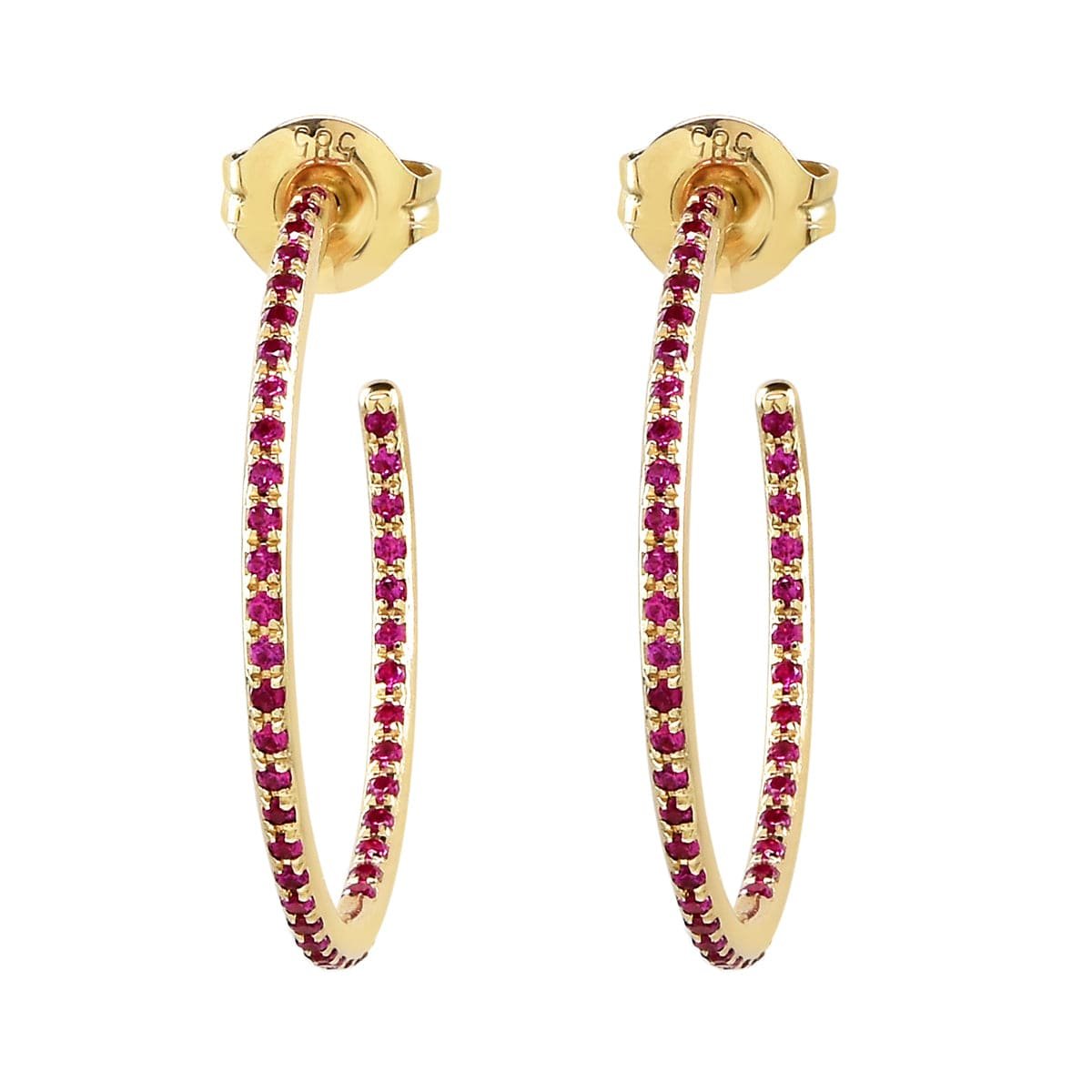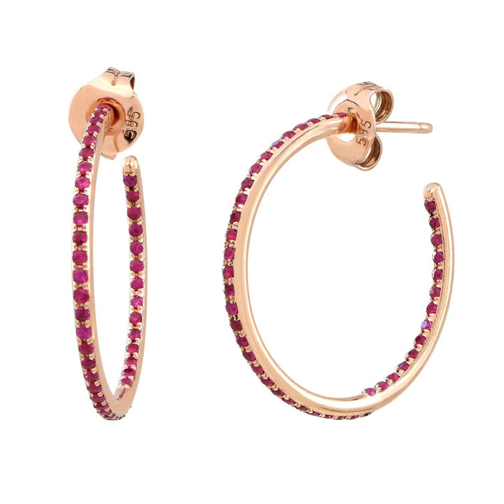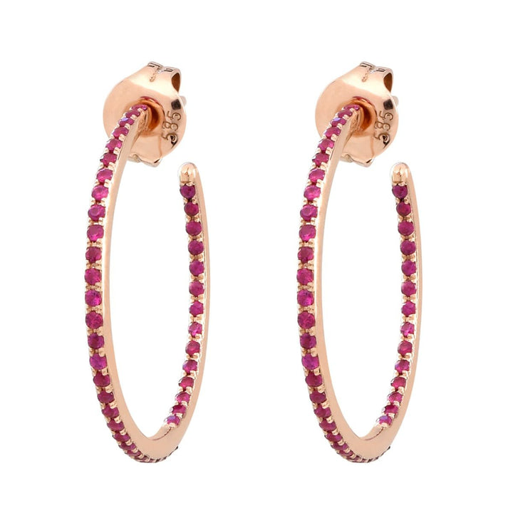 Featuring a sleek round hoop design and inside-out high quality rubies for exceptional sparkle, these earrings offer versatile elegance for day and night, work or play.