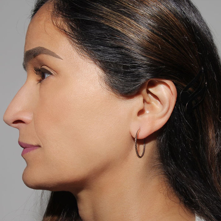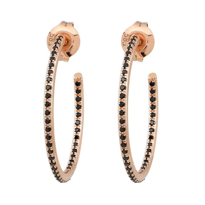 14k rose gold with 0.33ctw black diamonds, grade A. Dimensions: 1 inch in diameter.