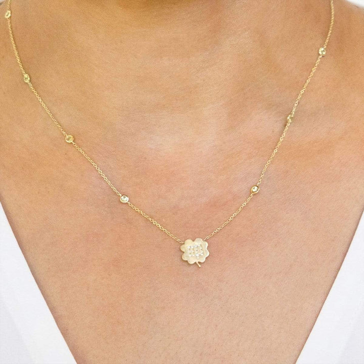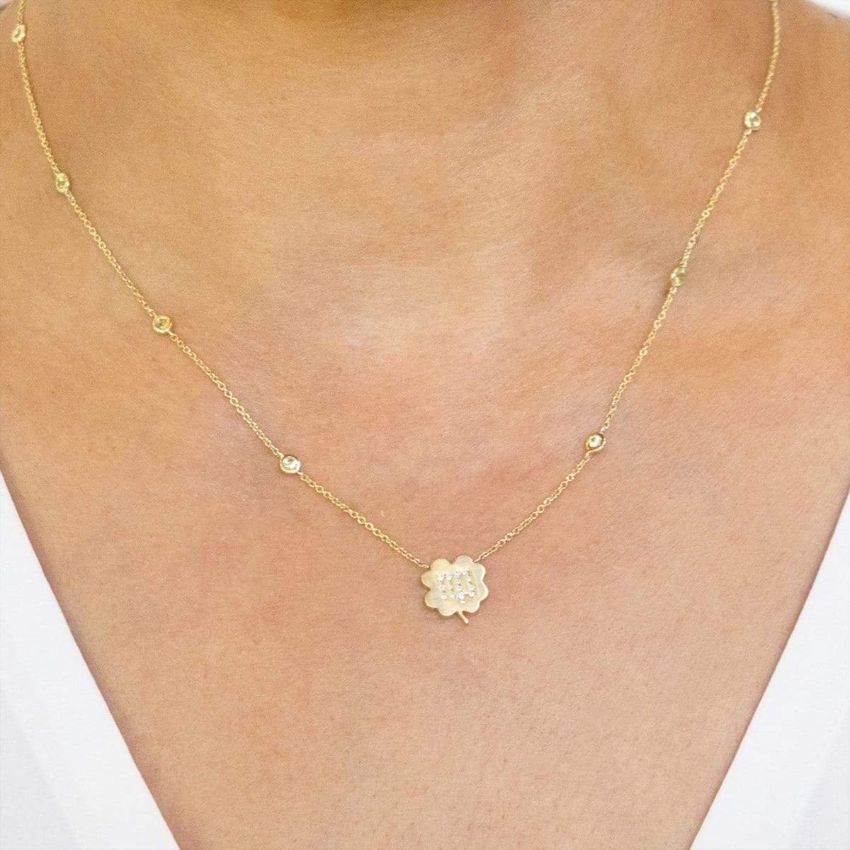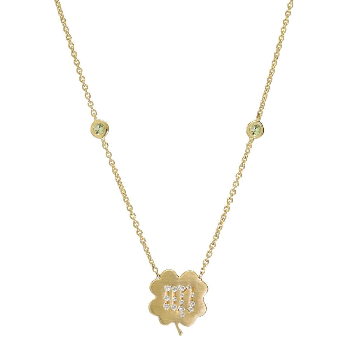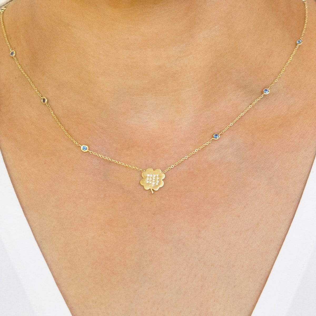 The Virgo Zodiac Clover necklace is a meaningful way to celebrate your zodiac sign while adding a touch of personalized beauty to your jewelry collection. The clover motif signifies luck and prosperity, offering an enchanting foundation for our necklaces that celebrate personal journeys and blessings. Centered within the clover, the diamond-encrusted zodiac adds a celestial touch, reflecting your astrological identity and energy. Gracefully stationed along the chain, bezeled birthstones personalize each necklace, connecting you to your birth month's unique qualities and significance. The delicate station chain enhances the necklace's grace, allowing each element to shine individually while harmoniously coming together as a stunning whole.