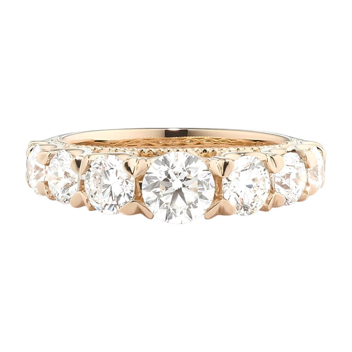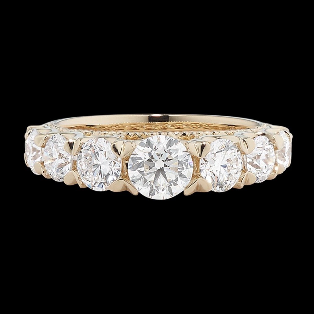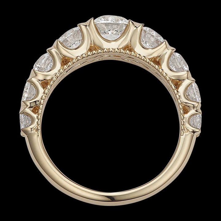 Since 1929, the Shane family have expertly crafted fine jewelry for life's most special moments. Tom Shane and his son, Rordan, uphold the legacy of being your friend in the jewelry business. The one you can trust to help you shine brighter every day. Rooted in quality craftsmanship and a fervent pursuit of the most beautiful gemstones, Shane Co. ensures your love story is in good hands. They are here for you for a lifetime, because they are in it for a lifetime. Let Shane Co. help you find jewelry that feels like you.Style notes: This 14-karat yellow gold ring offers bold sparkle with graduated natural diamonds and features ornate milgrain detailing hidden along the sides. It makes a beautiful wedding band or a great addition to any fine jewelry collection.Price: Please note price may vary due to exchange rate differences or shipping, duties and taxes. Price may also vary with materials choice. Final price is calculated at checkout at the designer's website. Materials: 14k yellow gold with 2.15ctw diamonds.Dimensions: Approx. 2.5mm band width