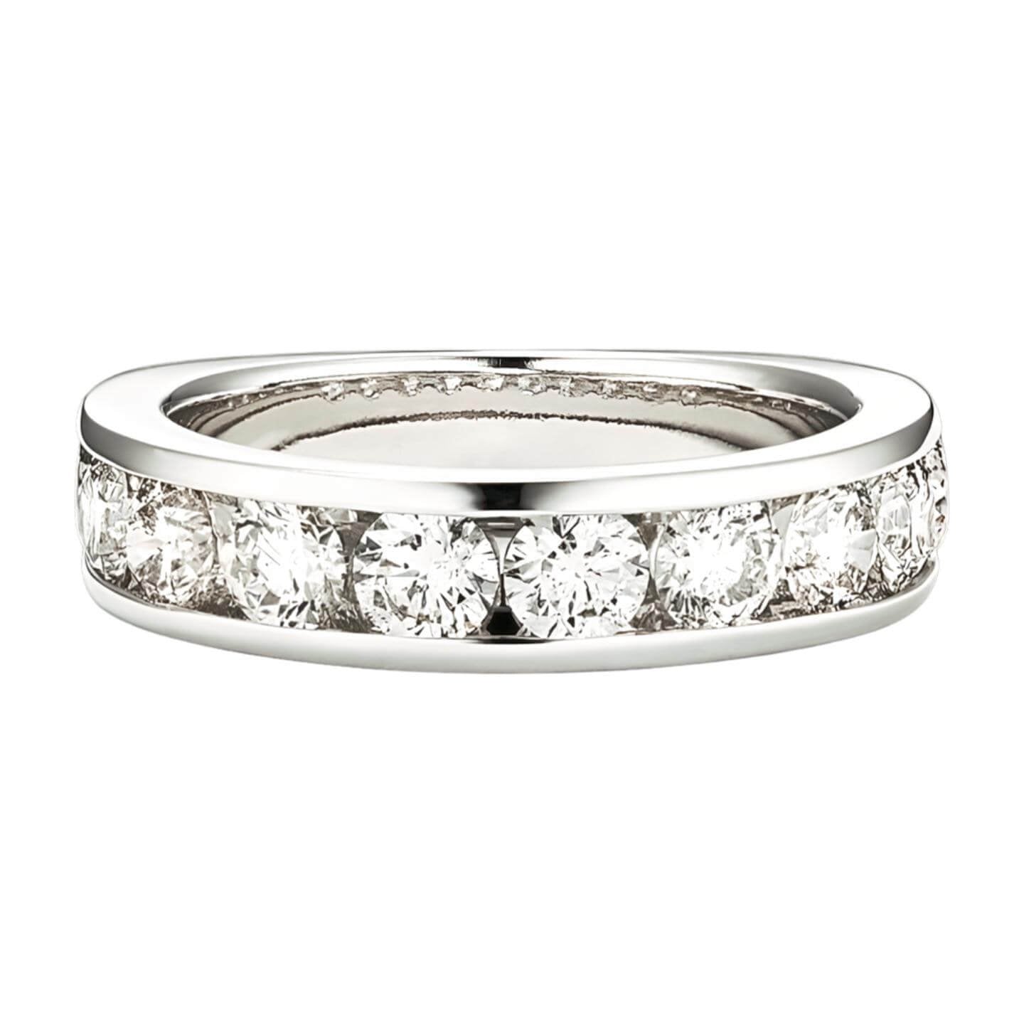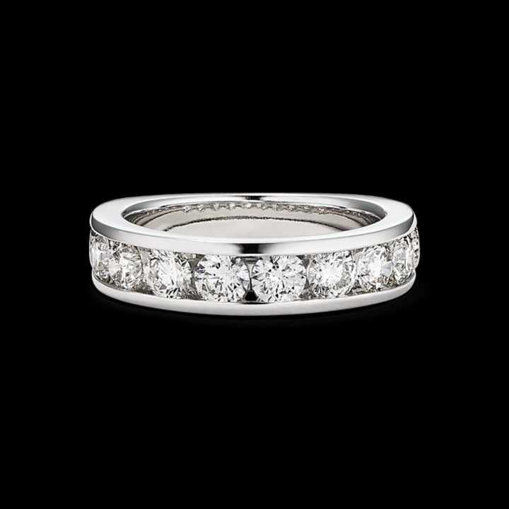 Since 1929, the Shane family have expertly crafted fine jewelry for life's most special moments. Tom Shane and his son, Rordan, uphold the legacy of being your friend in the jewelry business. The one you can trust to help you shine brighter every day. Rooted in quality craftsmanship and a fervent pursuit of the most beautiful gemstones, Shane Co. ensures your love story is in good hands. They are here for you for a lifetime, because they are in it for a lifetime. Let Shane Co. help you find jewelry that feels like you.Style notes: This channel-set band features sparkling natural diamonds for a clean and classic look. Crafted in bright 14-karat white gold, it makes a beautiful wedding band, anniversary gift, or daily accessory.Price: Please note price may vary due to exchange rate differences or shipping, duties and taxes. Price may also vary with materials choice. Final price is calculated at checkout at the designer's website. Materials: 14k white gold with 1.95ctw diamonds. Dimensions: Approx. 4mm band width