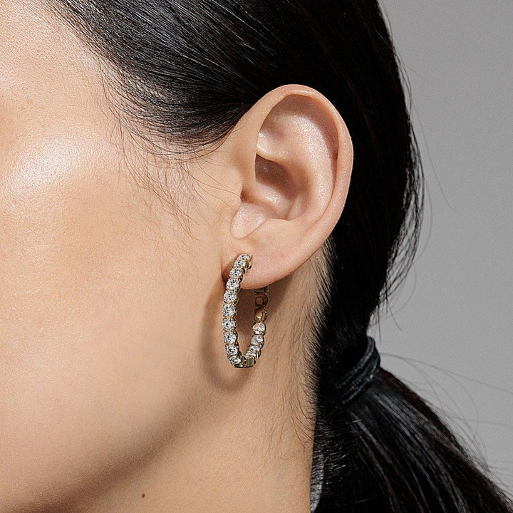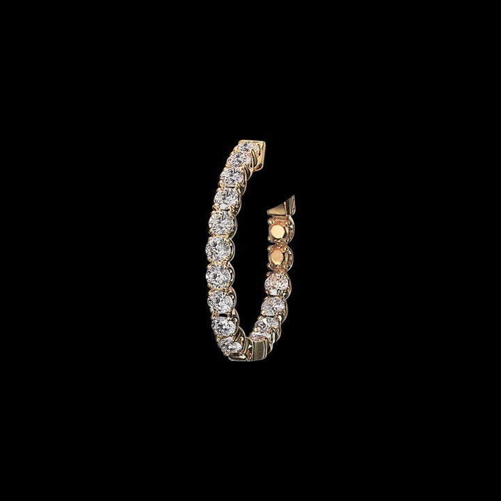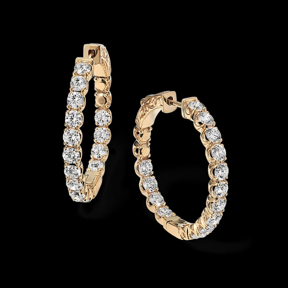 Since 1929, the Shane family have expertly crafted fine jewelry for life's most special moments. Tom Shane and his son, Rordan, uphold the legacy of being your friend in the jewelry business. The one you can trust to help you shine brighter every day. Rooted in quality craftsmanship and a fervent pursuit of the most beautiful gemstones, Shane Co. ensures your love story is in good hands. They are here for you for a lifetime, because they are in it for a lifetime. Let Shane Co. help you find jewelry that feels like you.Style notes: These bold natural diamond hoop earrings are fit for nobility with hand-matched diamonds along the front and along the inside back for maximum sparkle. Crafted in warm 14-karat yellow gold, engraving near the closure adds an ornate touch.Price: Please note price may vary due to exchange rate differences or shipping, duties and taxes. Price may also vary with materials choice. Final price is calculated at checkout at the designer's website. Materials: 14k yellow gold with 4.00ctw diamonds.Dimensions: Approx. 1 inch diameter