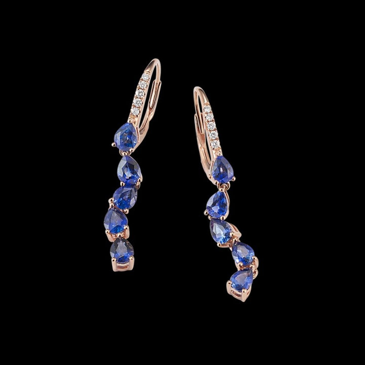 Since 1929, the Shane family have expertly crafted fine jewelry for life's most special moments. Tom Shane and his son, Rordan, uphold the legacy of being your friend in the jewelry business. The one you can trust to help you shine brighter every day. Rooted in quality craftsmanship and a fervent pursuit of the most beautiful gemstones, Shane Co. ensures your love story is in good hands. They are here for you for a lifetime, because they are in it for a lifetime. Let Shane Co. help you find jewelry that feels like you.Style notes: Pear-shaped natural sapphires dangle like raindrops on these gorgeous 14-karat rose gold drop earrings. They feature natural diamond accents on the secure lever back closure for a touch of sparkle to complete the look.Price: Please note price may vary due to exchange rate differences or shipping, duties and taxes. Price may also vary with materials choice. Final price is calculated at checkout at the designer's website. Materials: 14k rose gold with blue sapphires and diamonds. Dimensions: Approx. 1 and 1/4-inch length