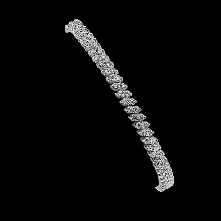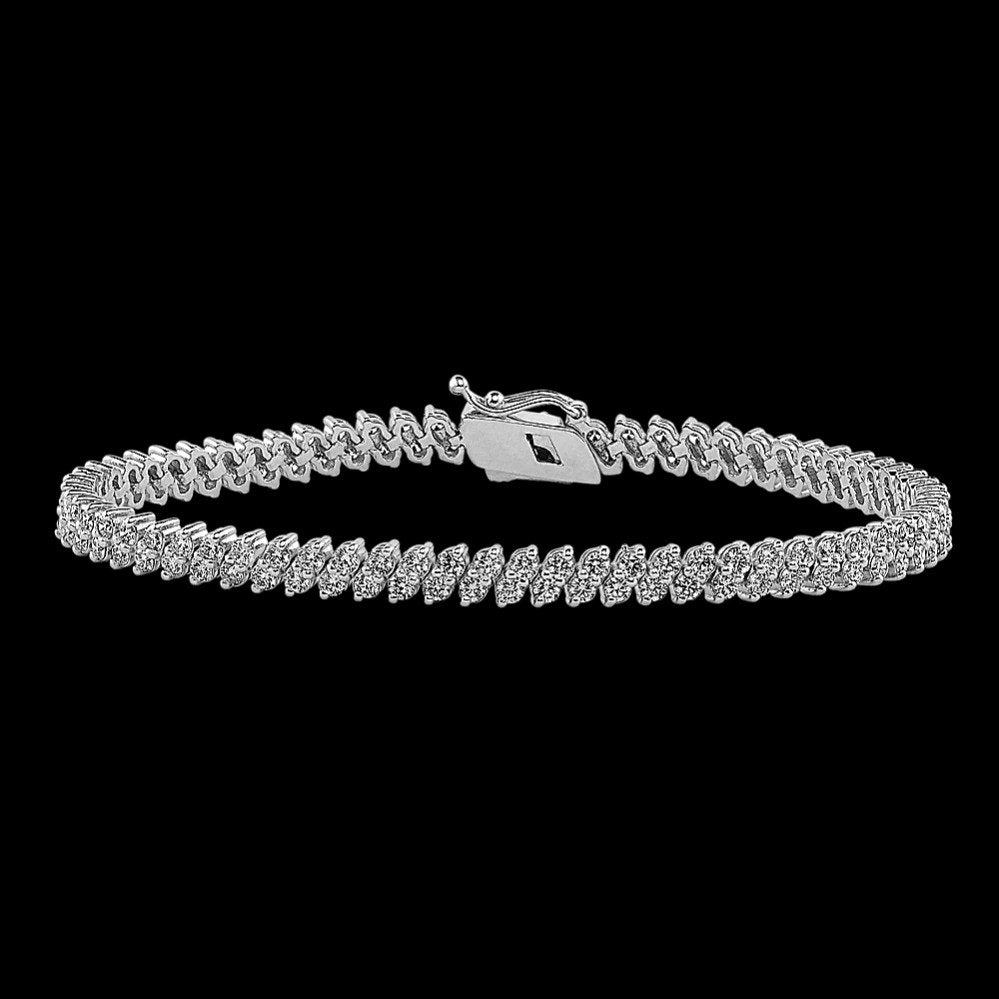 Since 1929, the Shane family have expertly crafted fine jewelry for life's most special moments. Tom Shane and his son, Rordan, uphold the legacy of being your friend in the jewelry business. The one you can trust to help you shine brighter every day. Rooted in quality craftsmanship and a fervent pursuit of the most beautiful gemstones, Shane Co. ensures your love story is in good hands. They are here for you for a lifetime, because they are in it for a lifetime. Let Shane Co. help you find jewelry that feels like you.Style notes: This stunning bracelet features two staggered rows of natural diamonds for a luxe look. Crafted in bright 14-karat white gold, the diamonds are hand-matched for consistent sparkle and beauty.Price: Please note price may vary due to exchange rate differences or shipping, duties and taxes. Price may also vary with materials choice. Final price is calculated at checkout at the designer's website. Materials: 14k white gold with 4.00ctw diamonds. Dimensions: 7-inch length
