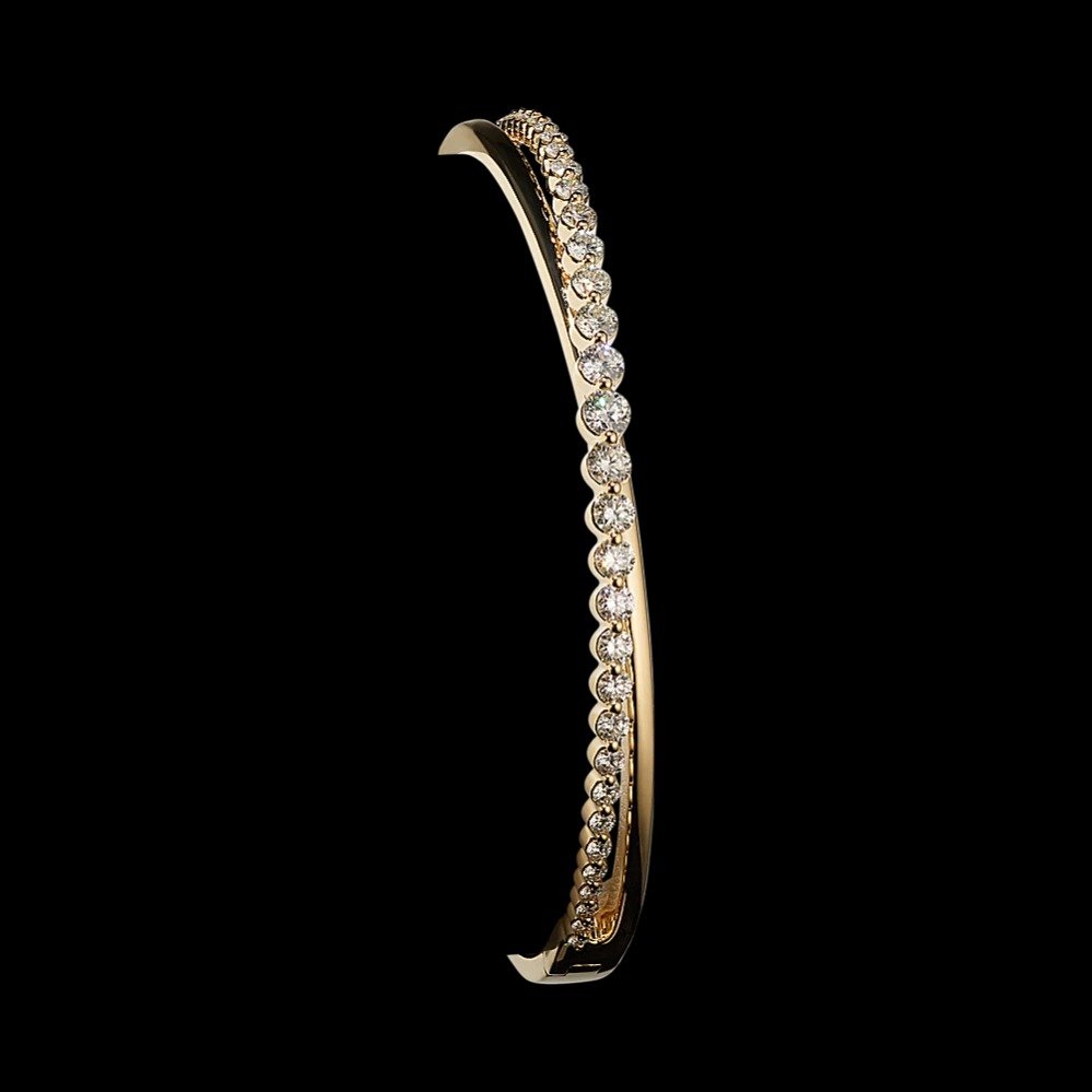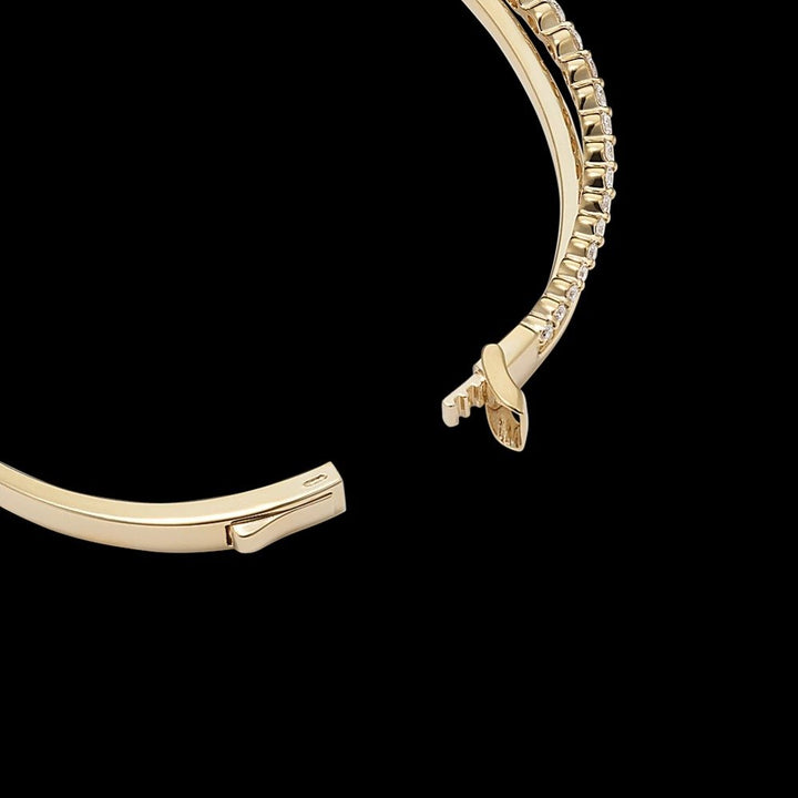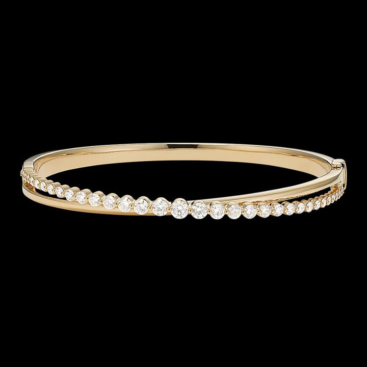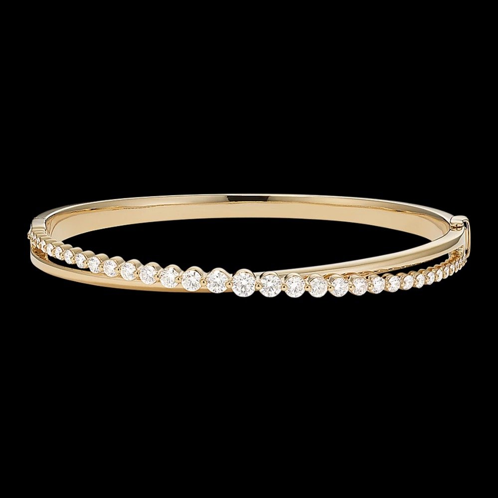 Since 1929, the Shane family have expertly crafted fine jewelry for life's most special moments. Tom Shane and his son, Rordan, uphold the legacy of being your friend in the jewelry business. The one you can trust to help you shine brighter every day. Rooted in quality craftsmanship and a fervent pursuit of the most beautiful gemstones, Shane Co. ensures your love story is in good hands. They are here for you for a lifetime, because they are in it for a lifetime. Let Shane Co. help you find jewelry that feels like you.Style notes: This 14-karat yellow gold bangle bracelet features a stylish crossover design and natural diamonds that graduate in size towards the center. Complete with a discrete hidden clasp and secure safety latch, it makes a gorgeous daily accessory.Price: Please note price may vary due to exchange rate differences or shipping, duties and taxes. Price may also vary with materials choice. Final price is calculated at checkout at the designer's website. Materials: 14k yellow gold with 1.60ctw diamonds.Dimensions: 7-inch length